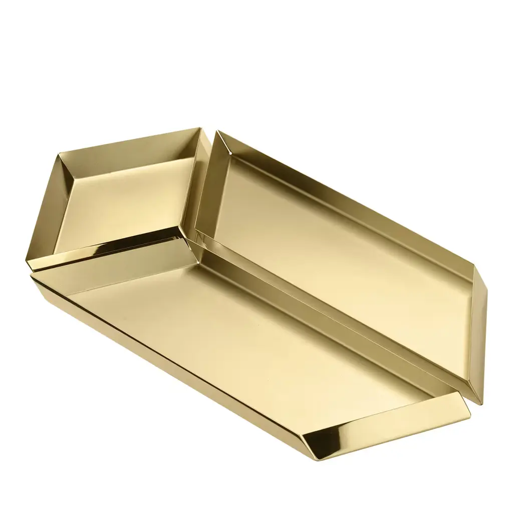 Ghidini 1961 Axonometry Desk Trays Set In Polished Brass