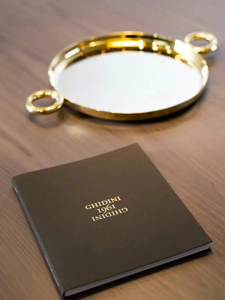 As an extension of the Double-O collection of the famous champagne cooler, Richard Hutten designs the Double-O tray. A fun and essential object that brings surprise and panache to the table. The essential lines, the elegantly curved edge inwards and the large round handles, all characteristic elements of the whole Double-O family. Hutten goes beyond the established modernist "form and function", proposing a contemporary game and function.Materials: 24-karat gold-plated stainless steel.