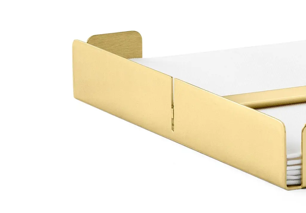 Napkins holder in brassOmini is a family of products that plays on the inclusion and the relationship between the human figure with a series of monolithic objects from geometric and Minimalist design. Small Lilliputians attack and animate the pure forms of objects, referring to the natural-artificial and abstract-figurative contradictions that have always characterized the relationship between man and the object.Material:Brass.