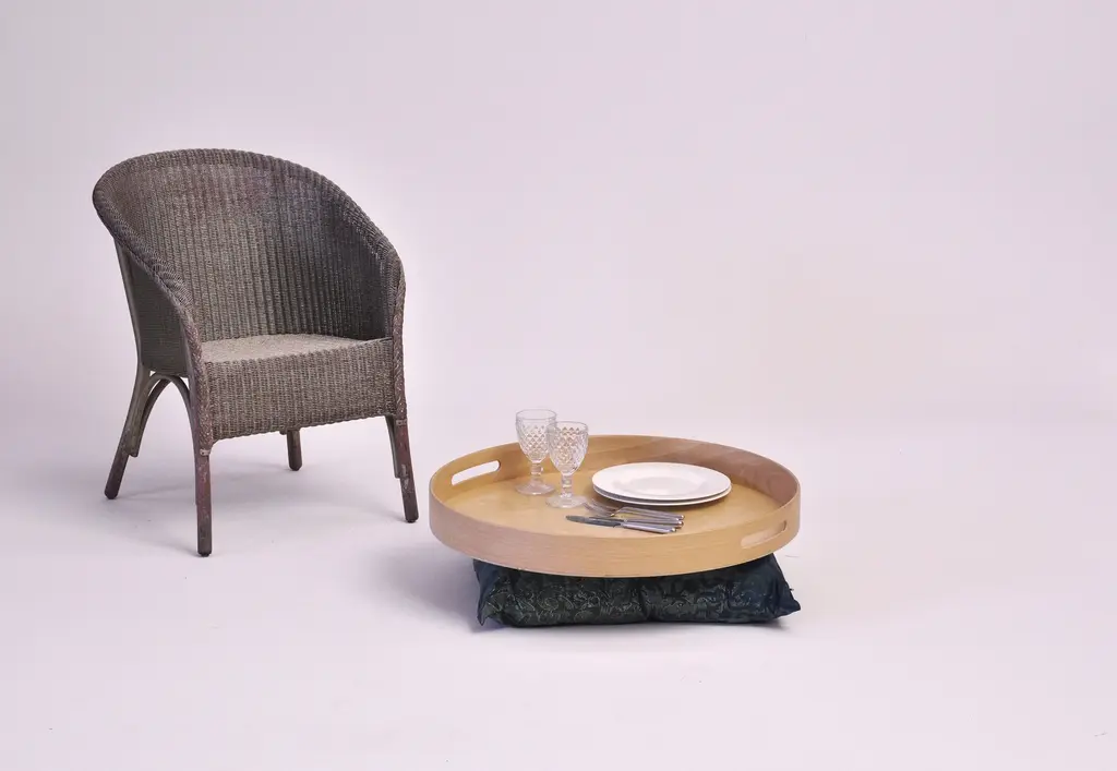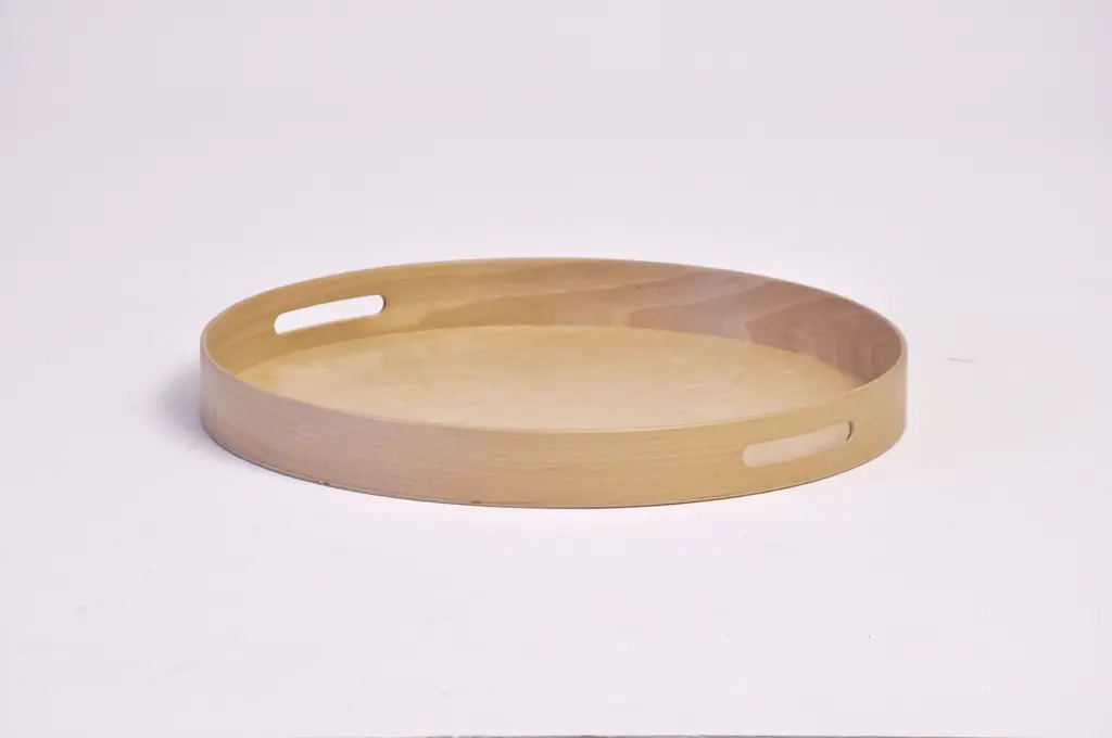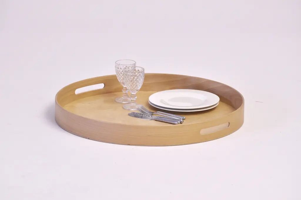 Giant wooden tray with handles with an essential design, made of curved beech. It can be transformed into a coffee table next to a sofa or armchair. Lightweight and sturdy, the side handles make this tray easy to handle and safe to grip without detracting from the essential nature of the project. It is a product and a production conceived and made in Italy which is not created in large series, but from the combination of technology, careful choices of materials and craftsmanship. Signed by Maker