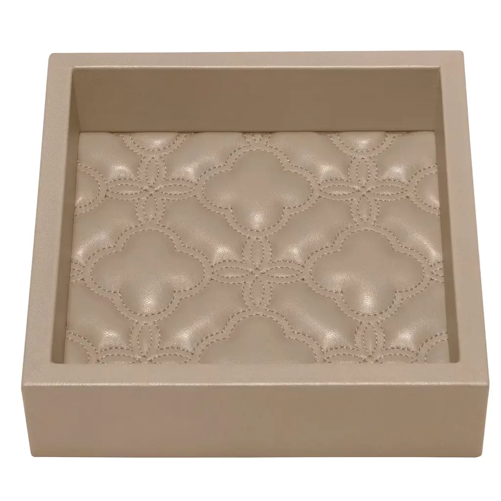 A touch of haute couture for your daily essentials, the Ecusson Valet Tray is a sophisticated creation from the Giobagnara and Elie Saab collaboration. Expertly handcrafted in Italy, this piece is wrapped in fine, supple leather. Its true luxury is revealed within: A soft, padded lining embossed with the iconic ELIE SAAB Monogram creates a protective sanctuary for your treasured accessories. An intimate expression of a life lived with style, it brings unmistakable elegance to any dresser or nightstand. Highlights:
