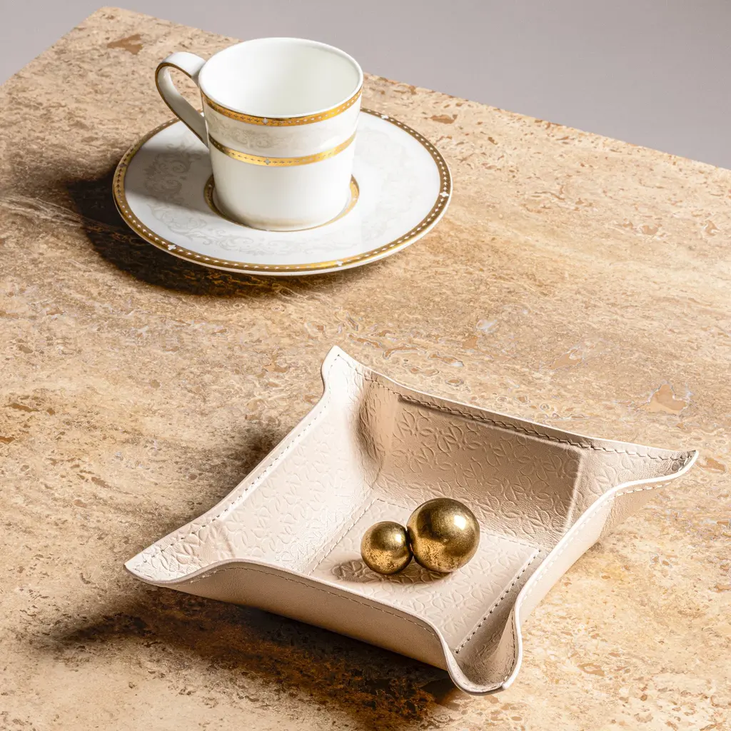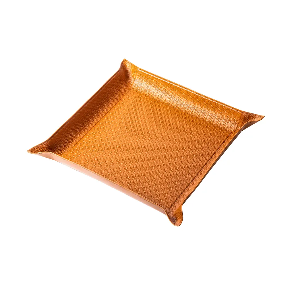 A grand statement in functional haute couture, the Giobagnara x Elie Saab Monogram Valet Tray is an innovative creation from the Giobagnara and Elie Saab collaboration. Expertly handcrafted in Italy, its unique metal structure features a rigid center and flexible sides that bend upwards to form a container. The generous rectangular surface is lined in leather embossed with the iconic ELIE SAAB Monogram. A perfect blend of iconic branding and intelligent engineering, it’s a sophisticated, adaptable foundation for a stylishly organized space. Highlights: