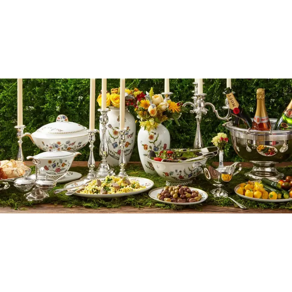 Prouna Fine Bone China specializes in creating tabletop items that combine fine English bone china with Swarovski Elements crystals, for a look that's both festive and refined. Every Prouna item is hand painted with 24kt gold or platinum. Prouna Jewelry marries the beauty of fine bone china dinnerware with the sparkle of Swarovski Crystal Elements. Sculptural white china serves as an elegant base to hand-painted designs, gold and platinum ornamentation and dazzling arrays of Swarovski crystals. With several patterns to choose from, each with its own unique story, you're sure to find one you love. The crystals are attached with a special method that is tested dishwasher safe. A true marriage of technology and style, Prouna Jewelry Dinnerware is the height of luxury.