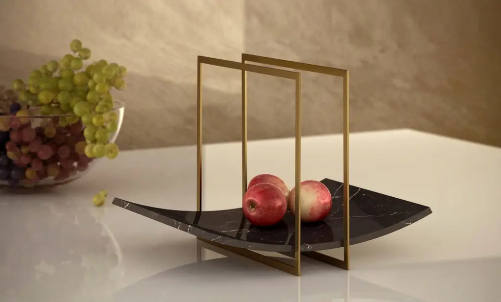 - Tray composed in marble and metal, created by Michele Arcarese Architect together with Giovannozzi.- Slab in marble type "CARRARA" or "NERO MARQUINIA".- Metal structure brass finishing.