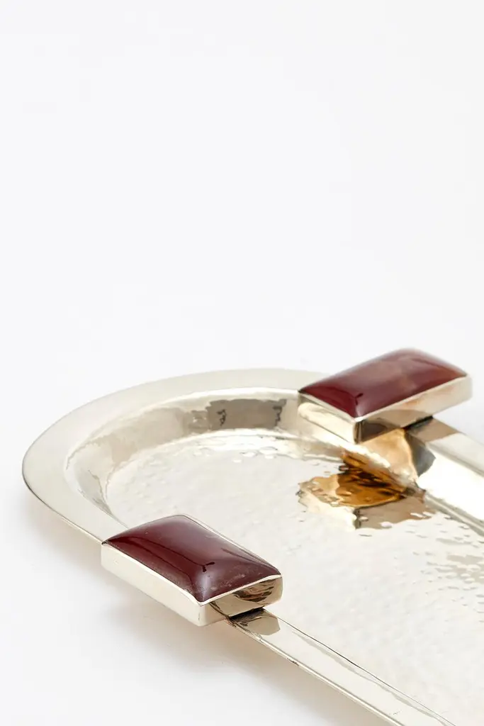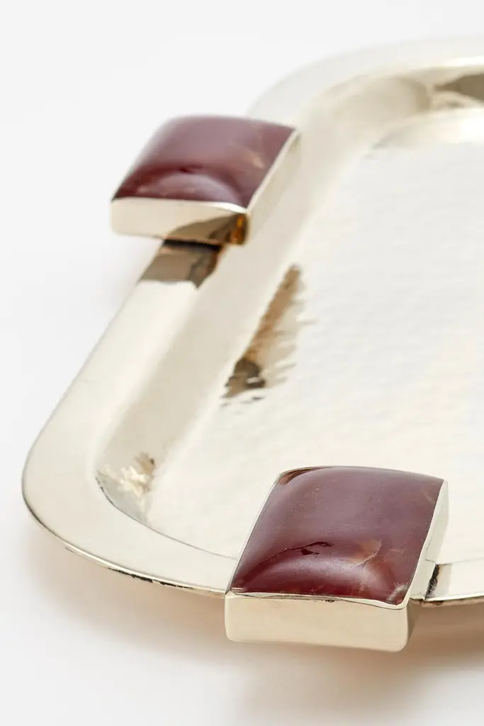Glaciar Medium Silver Alpaca & Brown Onyx Stone Tray