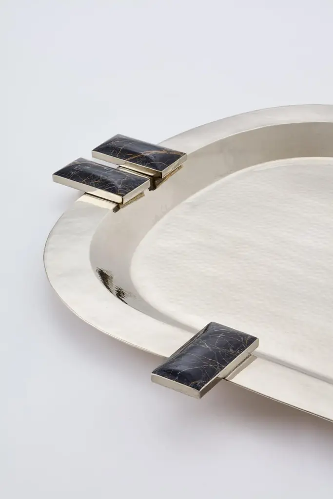 Glaciar Silver Alpaca & Black Onyx Stone Large Bar Tray
