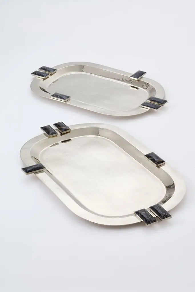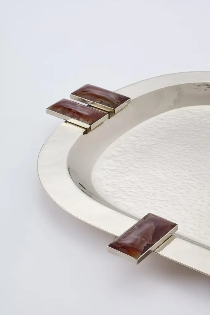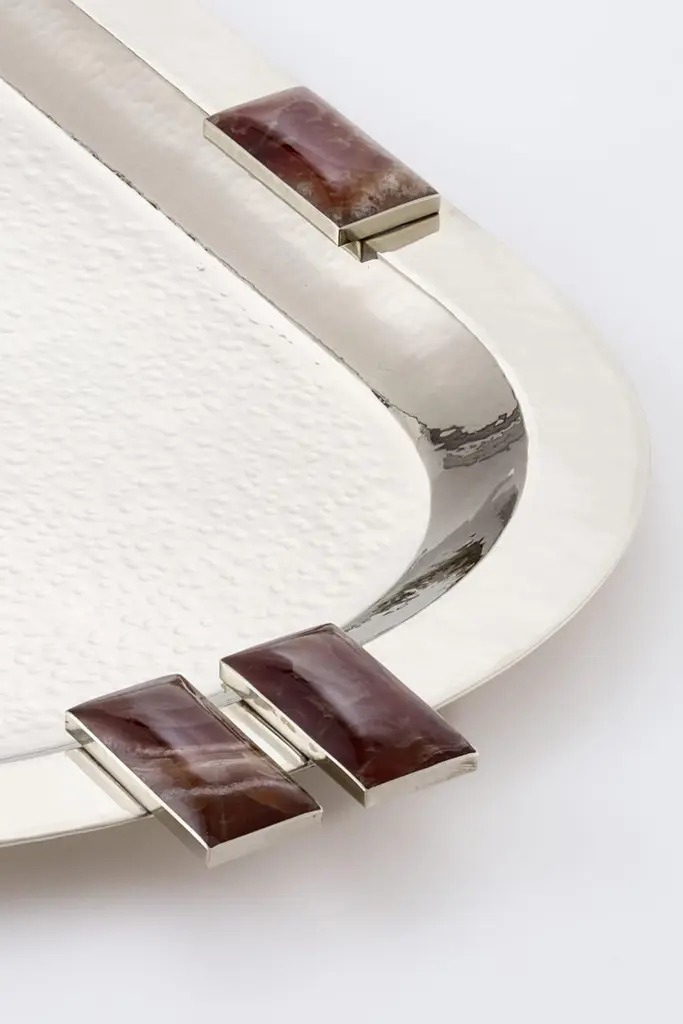 Glaciar Silver Alpaca & Bordeaux Onyx Stone Large Bar Tray