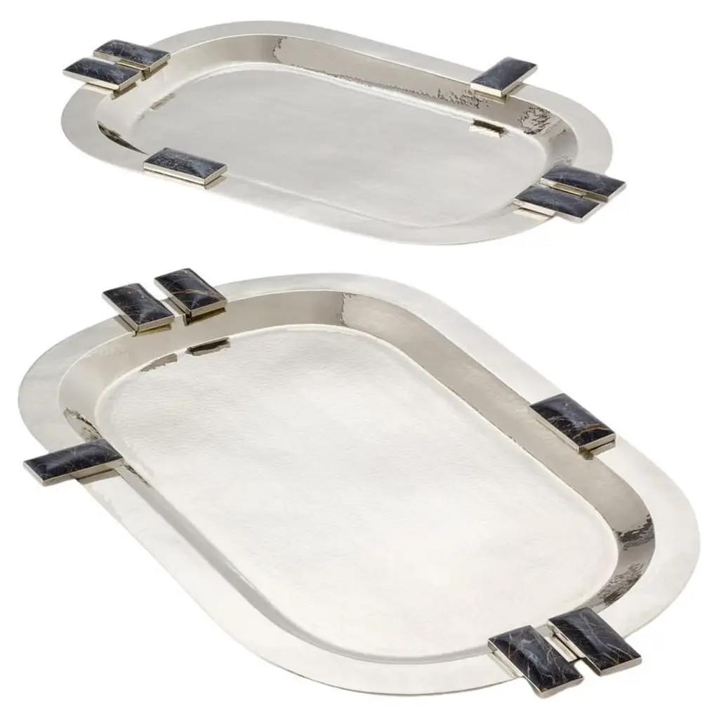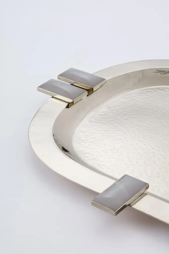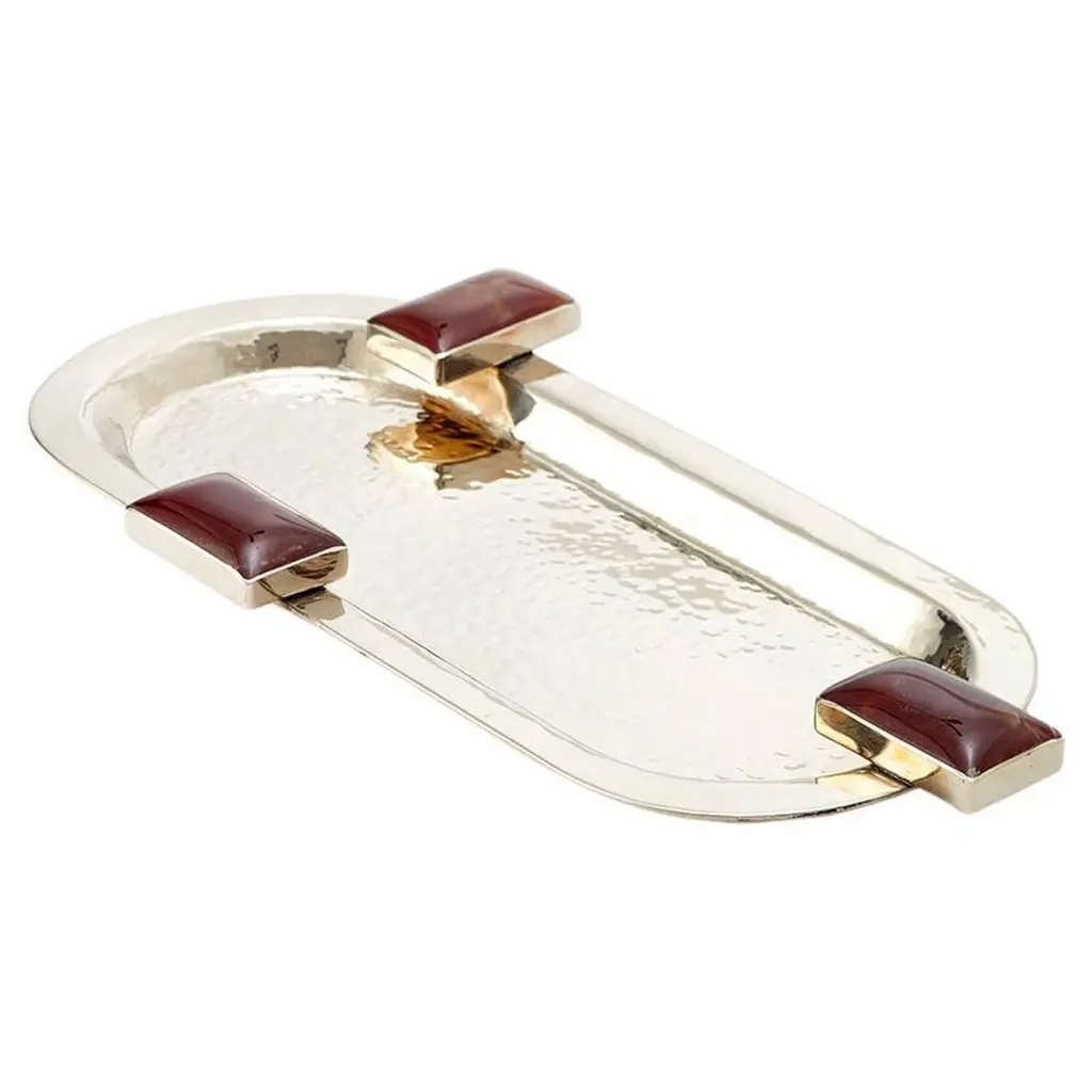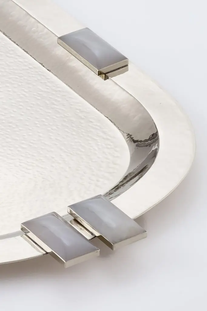 Glaciar Silver Alpaca & Cream Onyx Stone Large Bar Tray