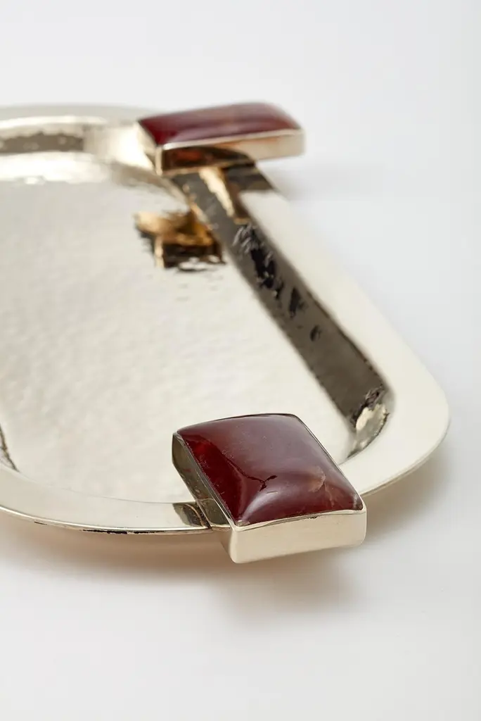 Glaciar Small Silver Alpaca & Brown Onyx Stone Tray