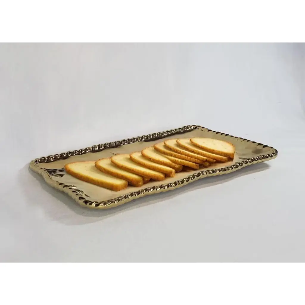 Gold Ceramic Serving Tray with Rope Accent Rim 14.25"