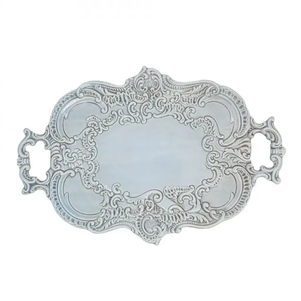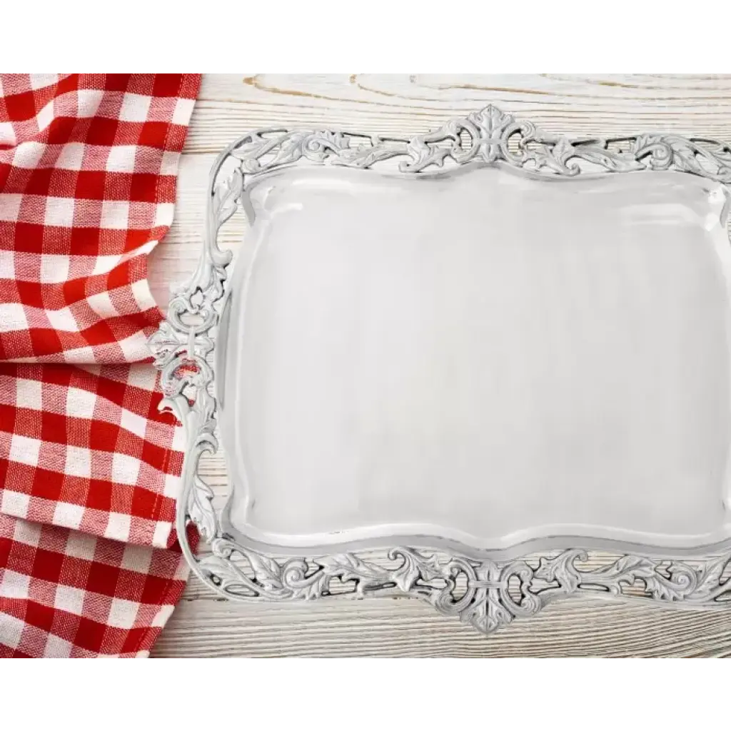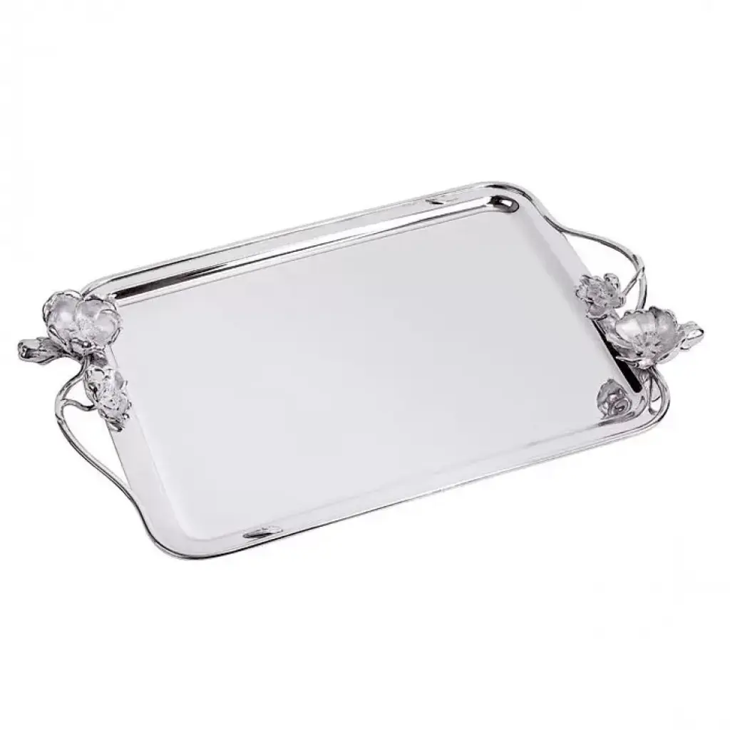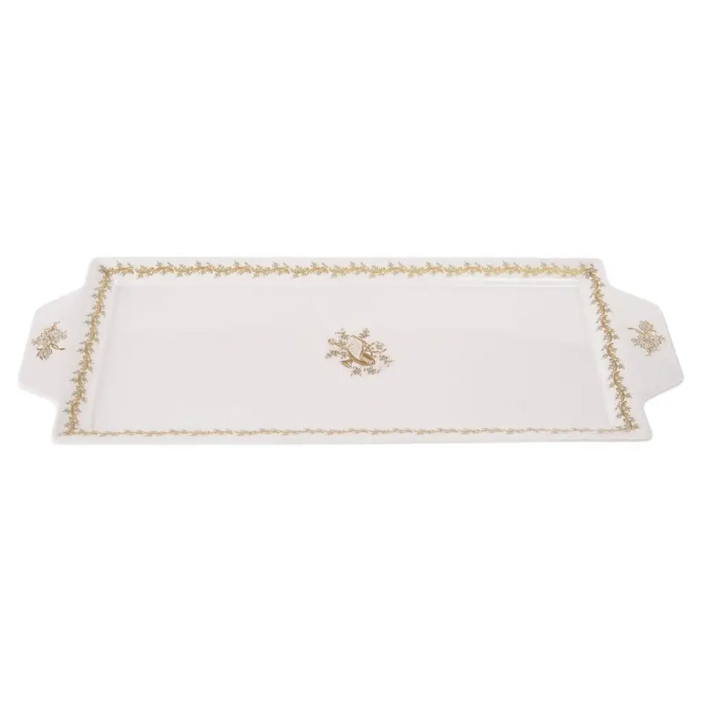 Golden Edge Rectangular Tray With Branch Handles 18 In L