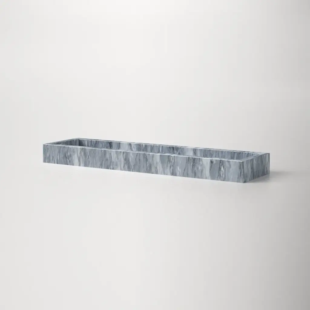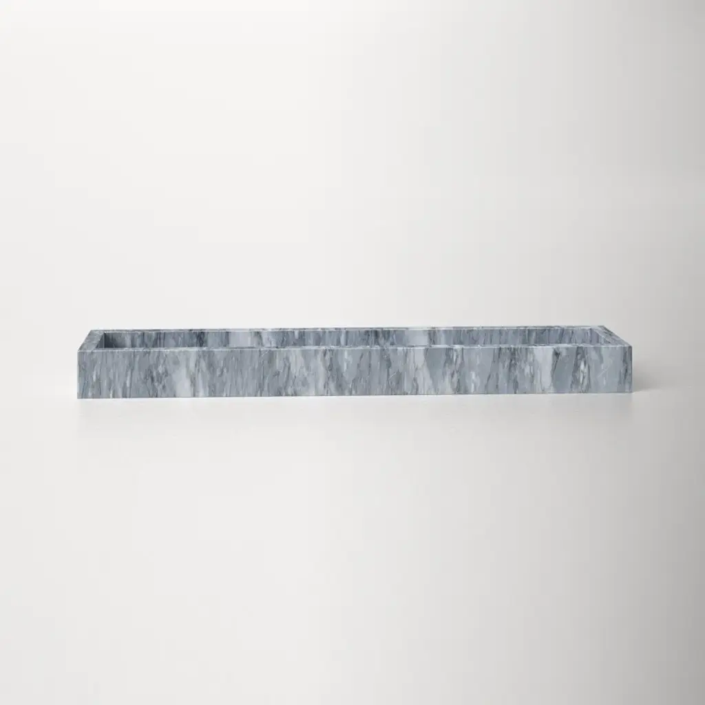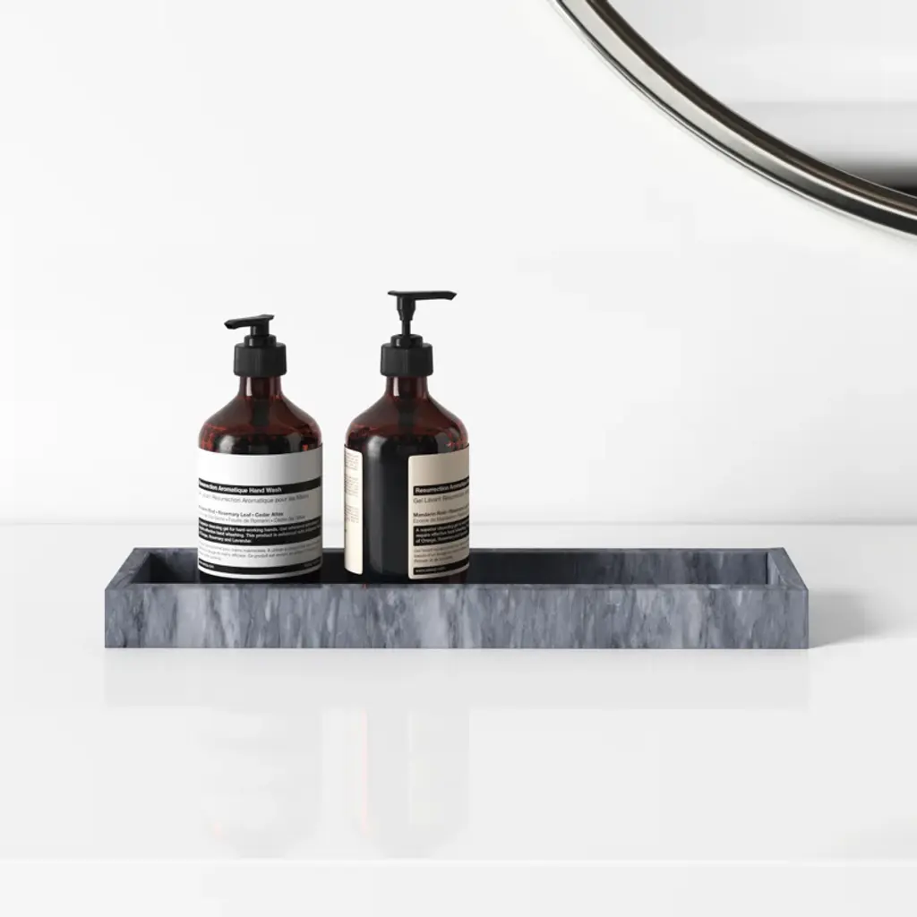 This bathroom accessory tray helps you keep your countertops organized, so you can maximize space where it really matters. It's made from marble, and has a clean-lined, rectangular design for a sleek, streamlined feel. Plus, it's designed to stand up to water, so whether it's ambient steam or the occasional splash, you don't need to worry about this piece warping. And since it measures just 14.24''' wide and 3.75'' deep, it'll fit on your countertops without dominating surface area.
