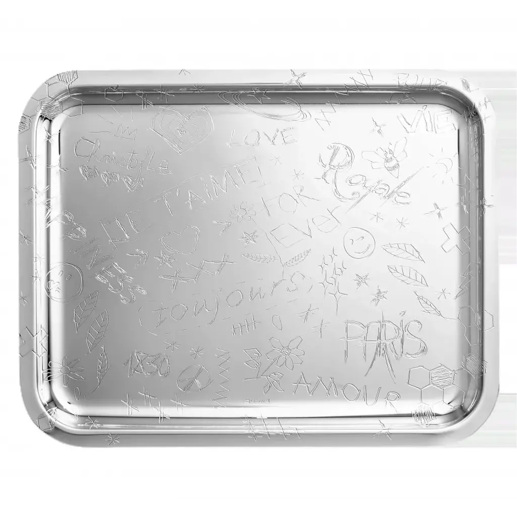 Designed by the design agency "la tête au cube" for Christofle the Silver plated tray engraved with the Graffiti's motif. An engraved decoration peculiar to each model, full of playful and loving messages but also with the strong codes of the Maison. The size of this tray is ideal to serve cocktails or as a decorative object on a desk. Thanks to its creations in silver, Christofle is a symbol of luxury and elegance. Since its founding in the mid-19th century, it has been a continous innovative force and has infused each era with a new art of living. Thus, over time, this prestigious company has revolutionized styles, techniques, and methods for the production and distribution of silver plate and the decorative arts. A player in and privileged witness to the evolution of taste, customs, and traditions, Christofle has always seen its name associated with major creative trends, renowned artists such as Man Ray or Jean Cocteau, avant-garde architects such as Gio Ponti, and modernist silversmiths such as Lino Sabattini and Christian Fjerdingsatd, as well as present-day designers such as Andrée Putman, Martin Szekely or Ora ïto. Today, as in the past, whether gracing the tables of emperors, princes, or maharajas, in palaces, on board the Trans-Siberian Railway, Orient Express, or transatlantic ocean liners, or in the contemporary restaurants, Christofle continues to make an impression.