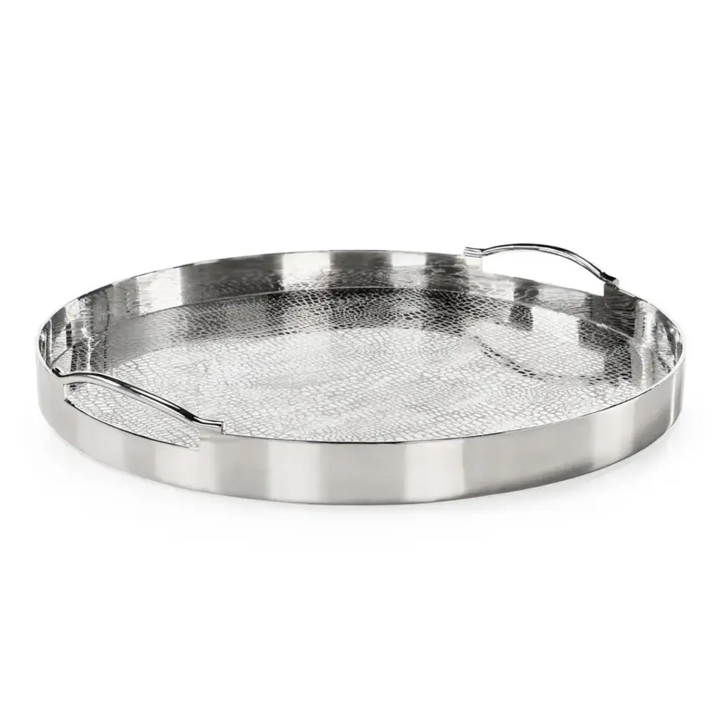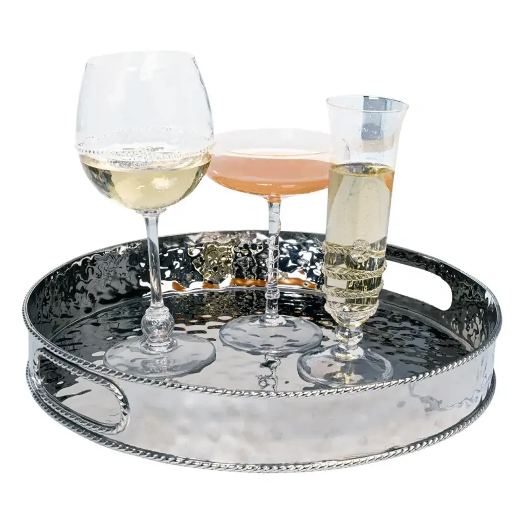 Decorated with a tidy trimming of simple thread, each piece in our gleaming Graham barware collection is handmade in hammered stainless steel. We are enchanted with the distinctive dimpling effect that is polished to brilliance for an undeniably sophisticated effect, and use this versatile tray for carrying cocktails al fresco, as a mainstay at the bar, and even serving tea in the garden. Based in Connecticut, Juliska is committed to bringing elegant European design into our modern homes. Since its founding in 2001, when David and Capucine Gooding began by working with artisans outside of Prague to reproduce antique Bohemian glass pieces, every piece from Juliska has shared a rich heritage spanning six centuries of European design. Juliska's creations are timeless, romantic and effortlessly chic.
