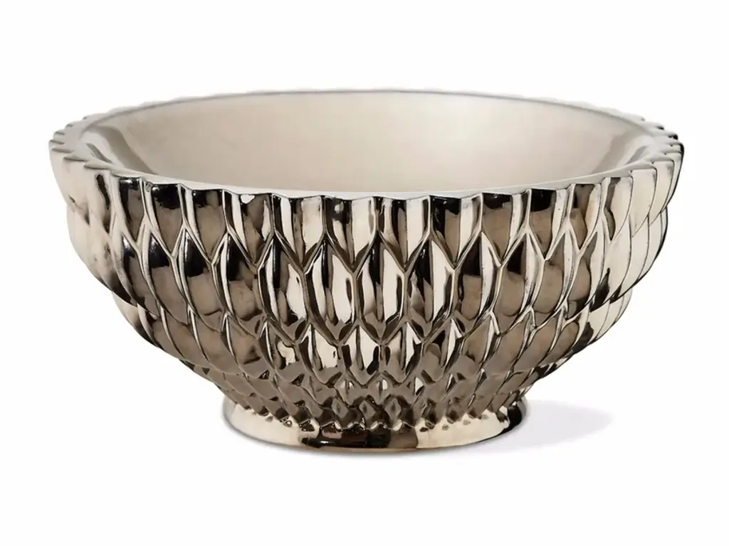 Let the creativity flow as you experiment with this Grape Tray with Glass Bowls from Arthur Court. Arthur Court's signature grape motif adorns the sauce bowl and borders the outside edge of this piece like a patterned tablecloth. The handmade, aluminum tray fits seamlessly into the bowl, making it the perfect way to chill shrimp cocktail over ice.