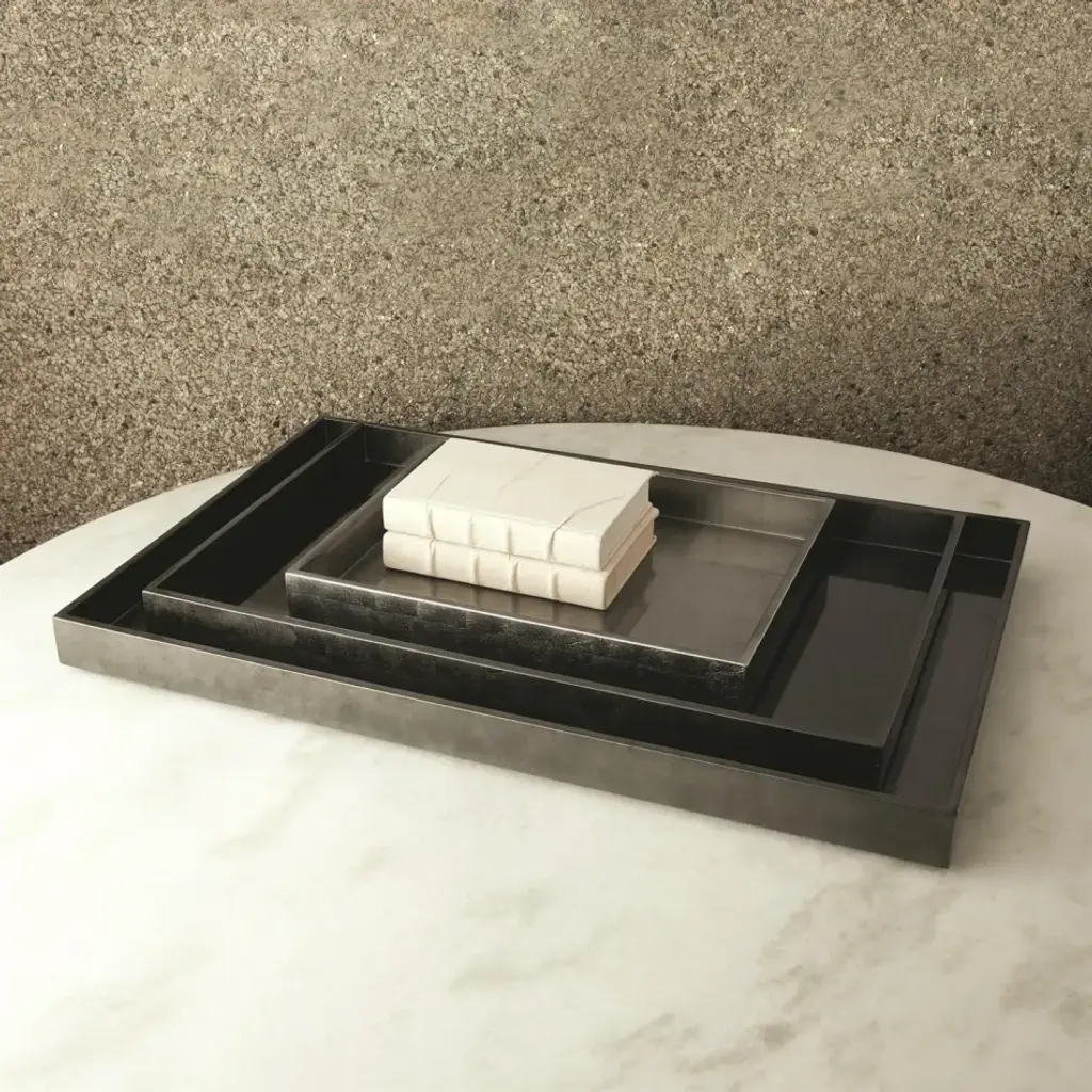 Made exclusively for Studio A Home, this high-quality Vietnamese lacquer is made in the traditional, multi-layered process which requires seven layers and several weeks to achieve a perfect finish. Gunmetal Silver Leaf Finish. Also available in Luxe Gold and Champagne finishes. From a fashion forward perspective, Global Views offers accessories, furniture, statement lighting, and an assortment of rugs and mirrors to add beauty and joy to your home.