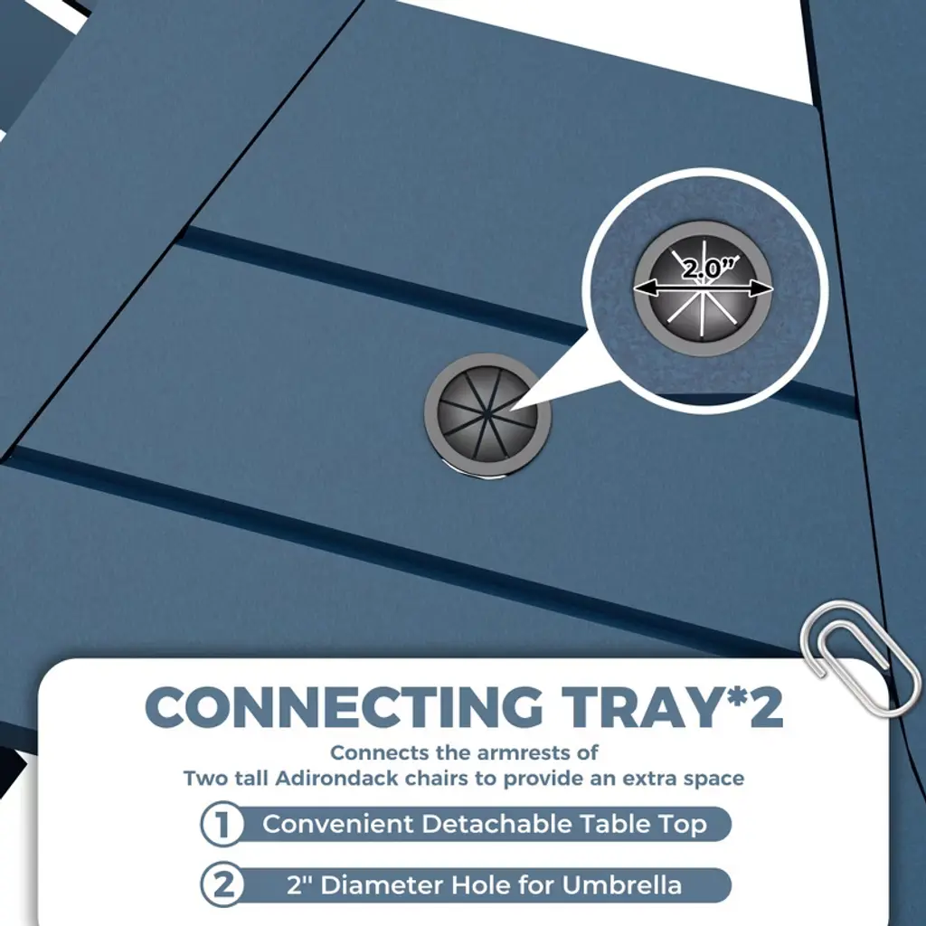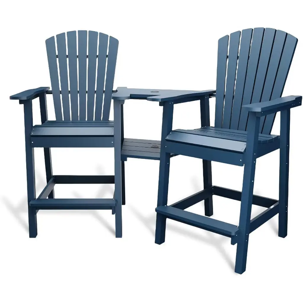 Gustowave Tall Adirondack Chair Set Of 2, Hdpe Tall Barstools With Connecting Trays, Bar Height Adirondack Chair For 2, All-weather Blue