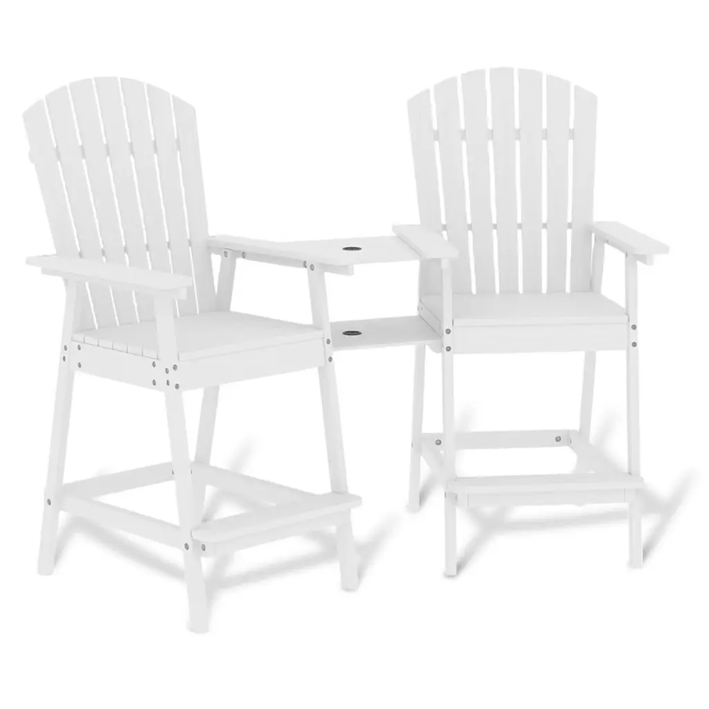 These eco-friendly Adirondack barstools combine recycled poly construction with tall ergonomic backs for durable outdoor comfort. Designed to withstand sun, rain, and humidity without fading or warping, they maintain structural integrity year-round. The integrated connector tray bridges both stools, offering convenient space for drinks and snacks during gatherings. Sold as a matching pair, they create cohesive patio or balcony seating with effortless style. Requires zero maintenance—simply wipe clean after use. Perfect for decks and poolside entertaining, they deliver lasting weather resilience, practical functionality, and modern rustic aesthetics for seamless outdoor living.