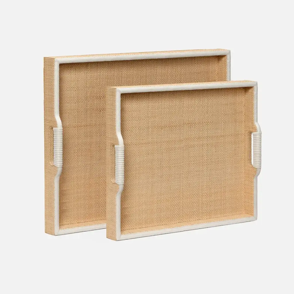 Hammet Natural/navy Raffia/full Grain Leather Tray Xl Sq Set Of Two
