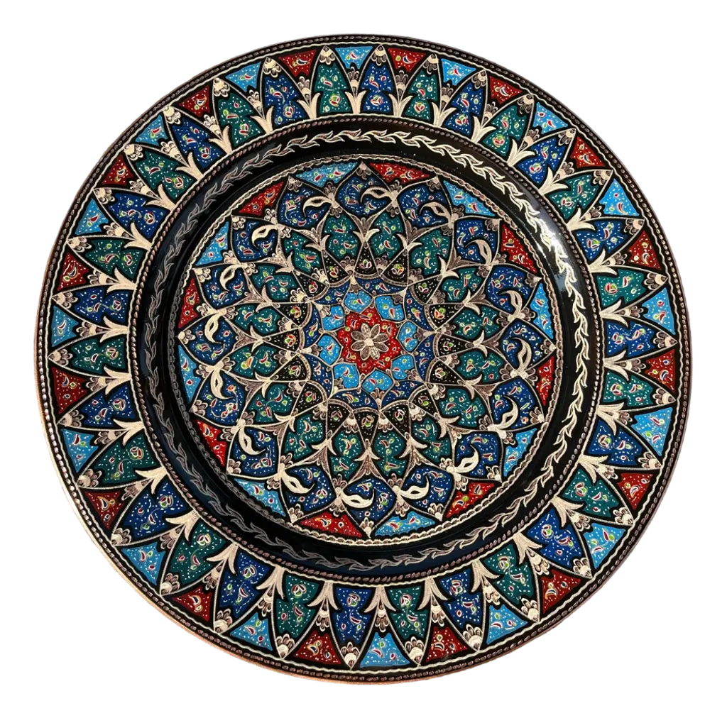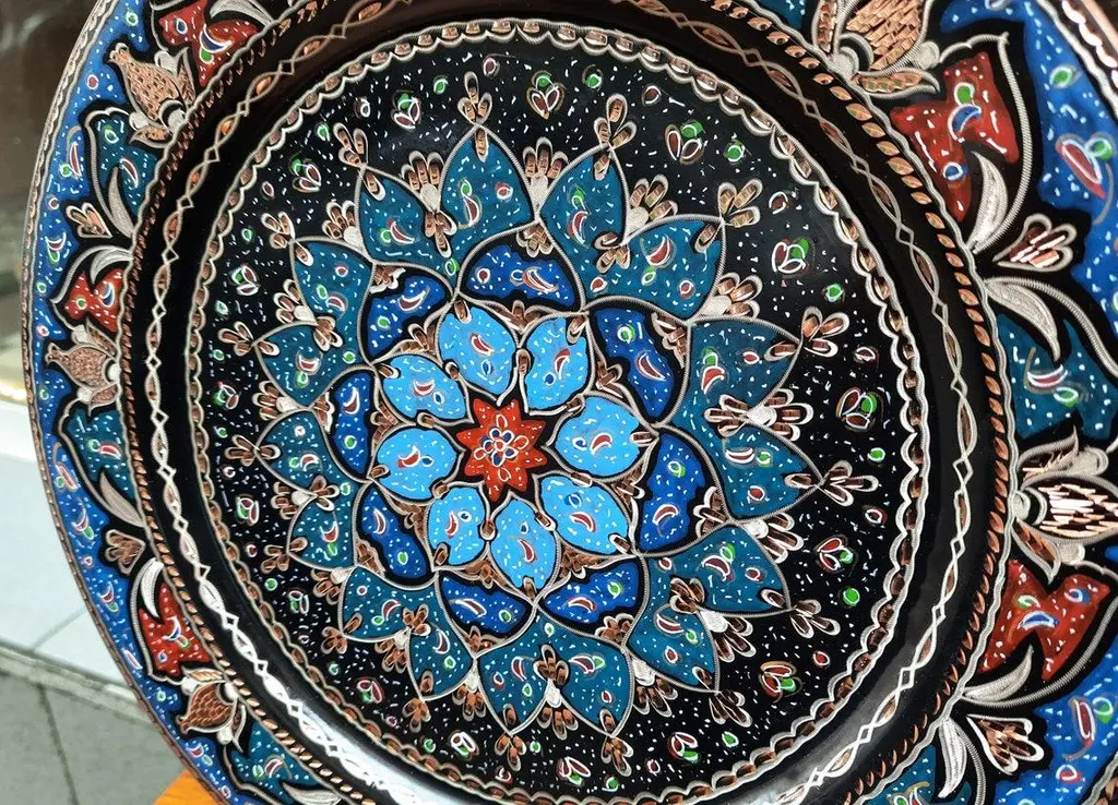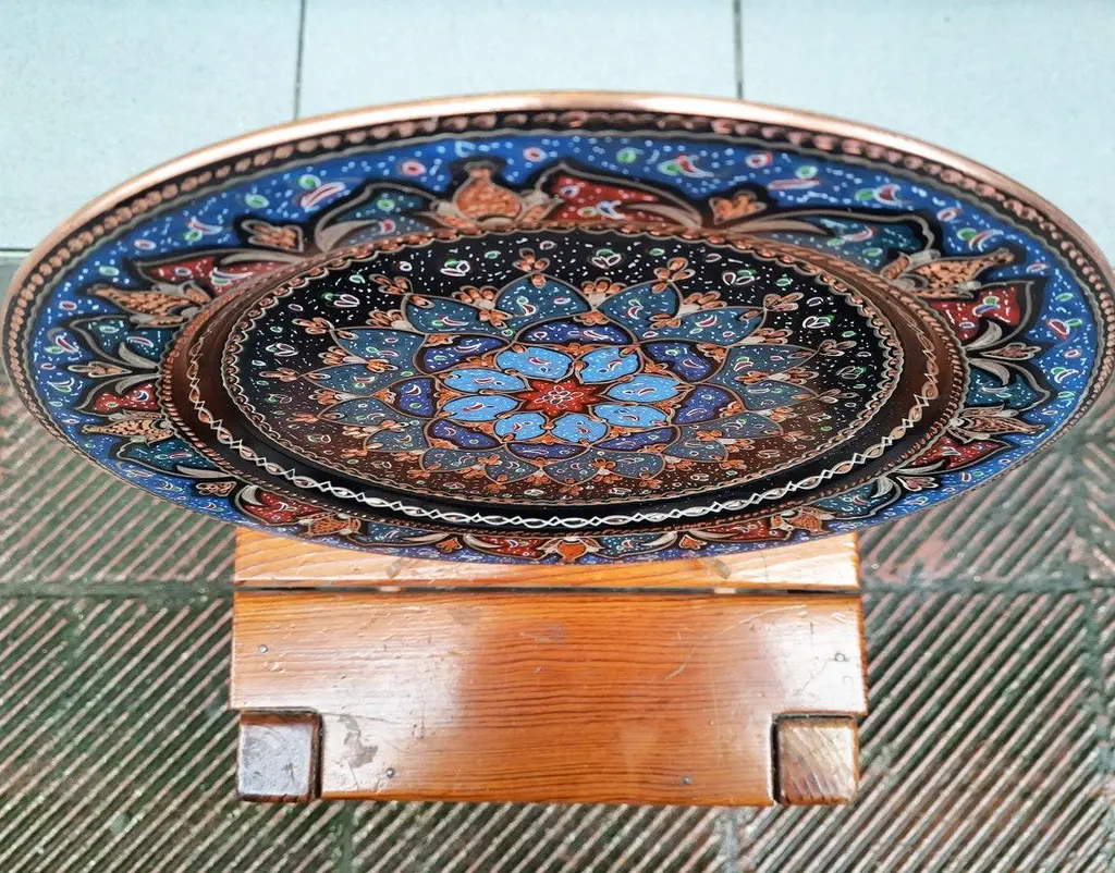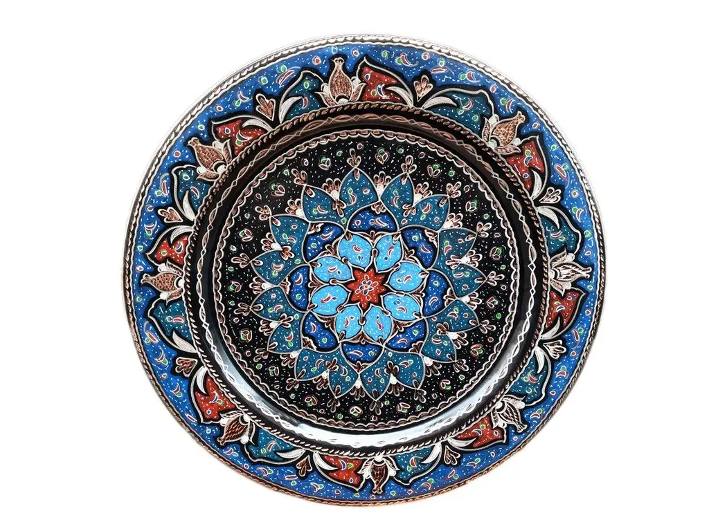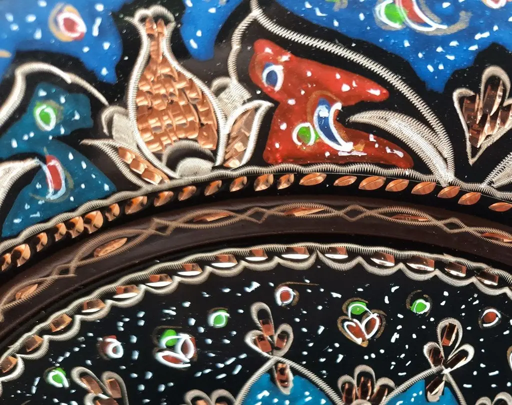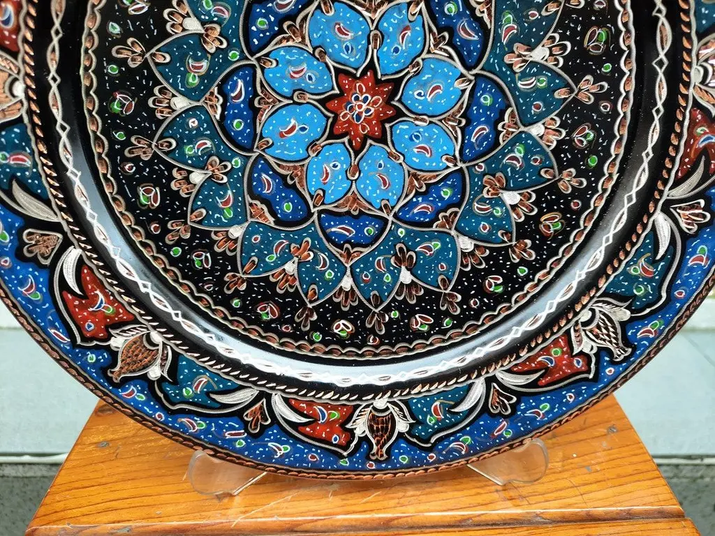 Hand Made Welcome Desk tray made by copper. Colorful Flower Design for wall hanging. Great for displaying your unique decoration. Hand painted plates can be hung to create wonderful wall art. There is an insert on the back of the plate for hanging. SIZE: 43 CM / 17 INCH My items are all unique and one of a kind. You can wash my items with your hand and you need to dry it properly. All hand painted, hand carved, varnished and waterproof.