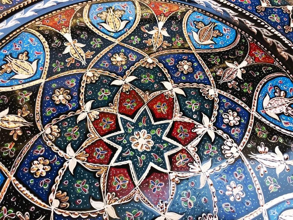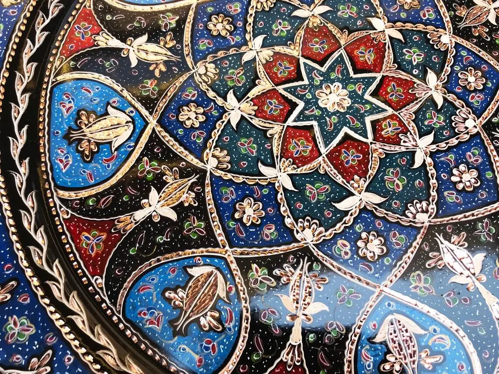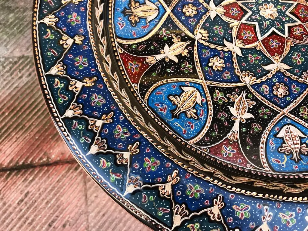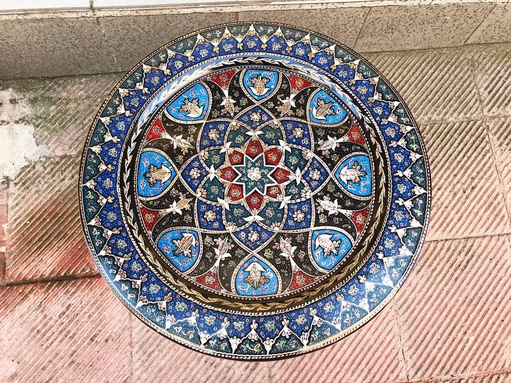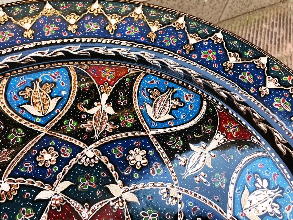 Handmade Turkish tray made by copper. Colorful Tulip Design for wall hanging. Great for displaying your unique decoration. Hand painted plates can be hung to create wonderful wall art. There is an insert on the back of the plate for hanging. SIZE: 43 CM / 17 INCH My items are all unique and one of a kind. You can wash my items with your hand and you need to dry it properly. All hand painted, hand carved, varnished and waterproof.