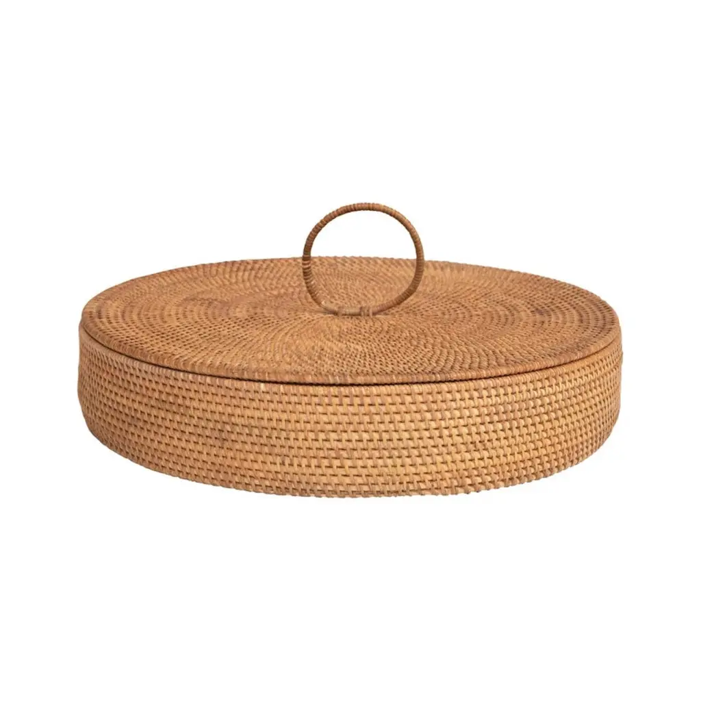 Hand-Woven Rattan Container w/ 5 Sections & Lid Natural Materials: 100% Rattan 19-3/4" Round x 4"H