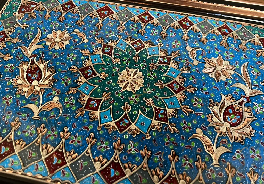 Handmade Floral Boho Carved Copper Service Tray With Handles