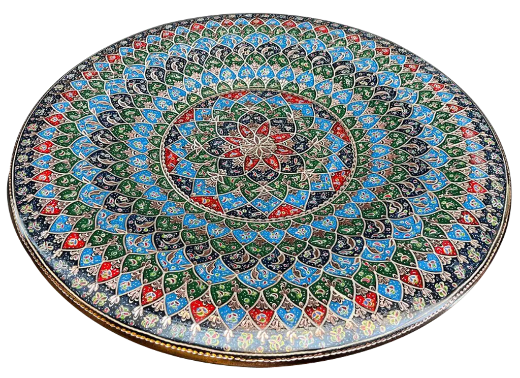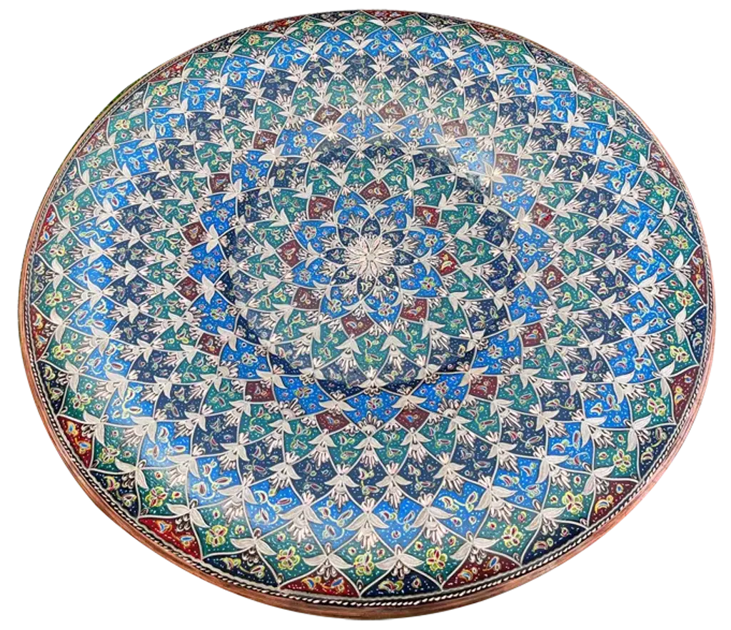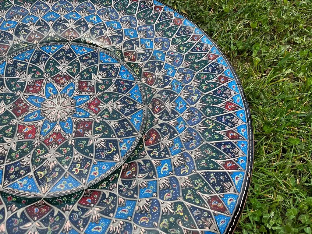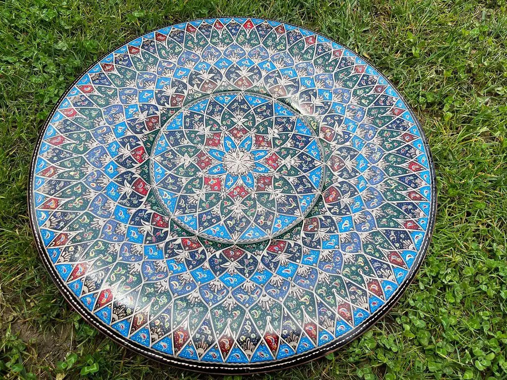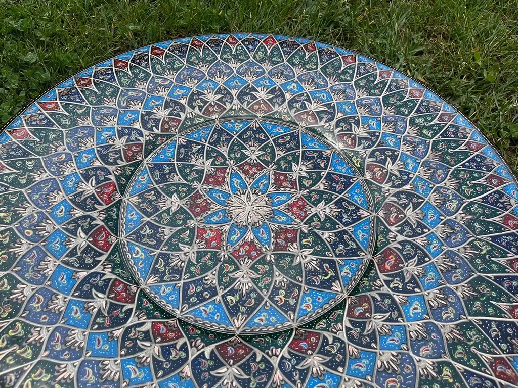 Floral Hand Carved large wall plate made by copper. Stylish flower design for wall hanging. Great for displaying your unique decoration. Hand painted tray can be hung to create wonderful wall art. There is an insert on the back of the plate for hanging. SIZE: 43 CM / 17 INCH My items are all unique and one of a kind. You can wash my items with your hand and you need to dry it properly. All hand painted, hand carved, varnished and waterproof.