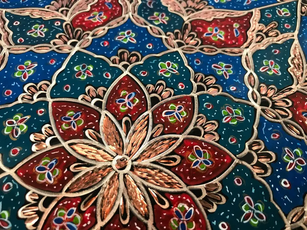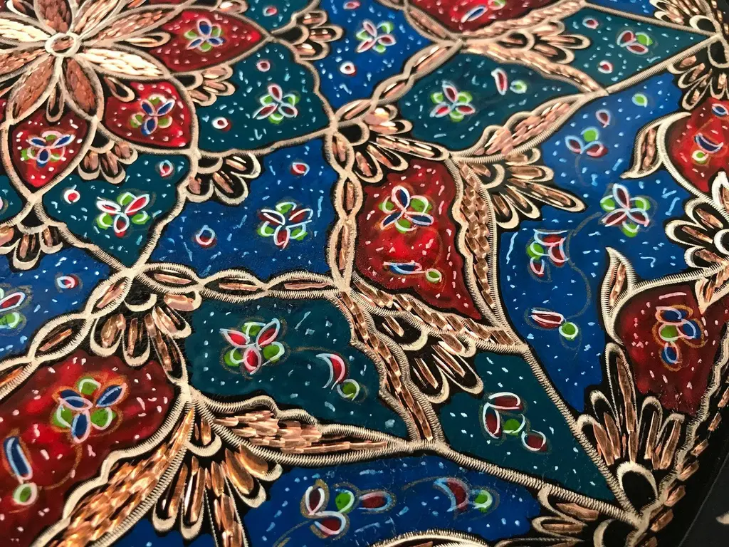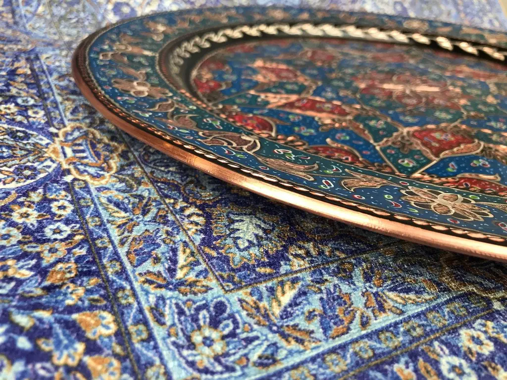 Handmade Inlaid Design Copper Tray