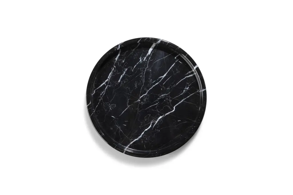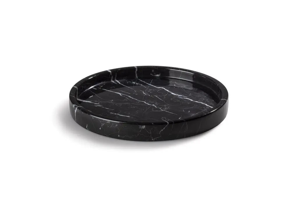 Handmade Nero Marquina Marble Bathroom Set With Round Tray