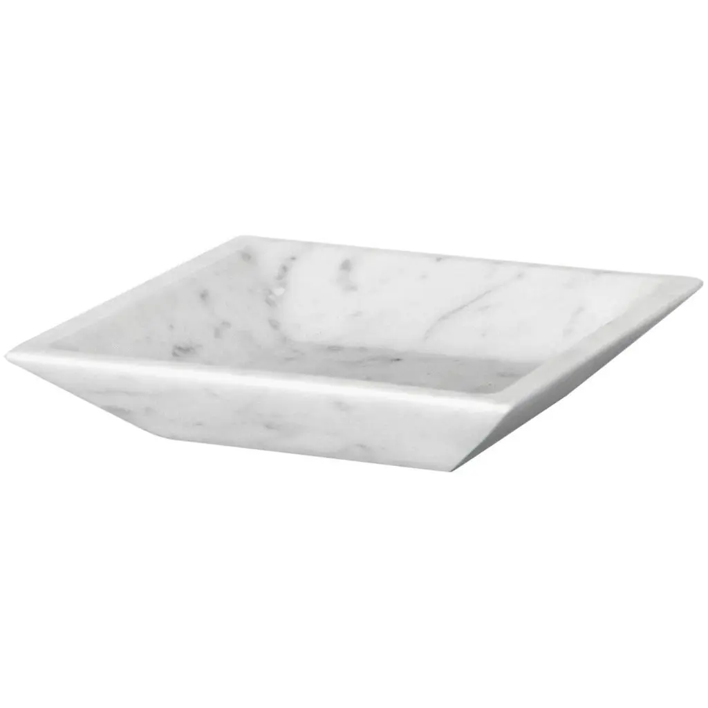 Squared white Carrara marble guest towel tray, ideal for spa, hotel, restaurant and private house bathrooms. It can be used also as a dresser valet or for the nice display of sweets and chocolates in the living-room or studio. Each piece is in a way unique (every marble block is different in veins and shades) and handmade by Italian artisans specialized over generations in processing marble. Slight variations in shape, color and size are to be considered a guarantee of an handmade creation.Important: Do not use lemon or vinegar on it, clean only with water and natural soap (like Marseilles soap), do not put in dishwasher.This object gives a distinct touch to any ambient.