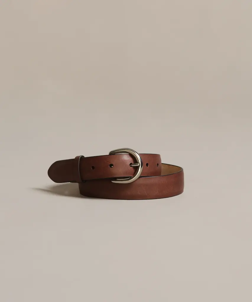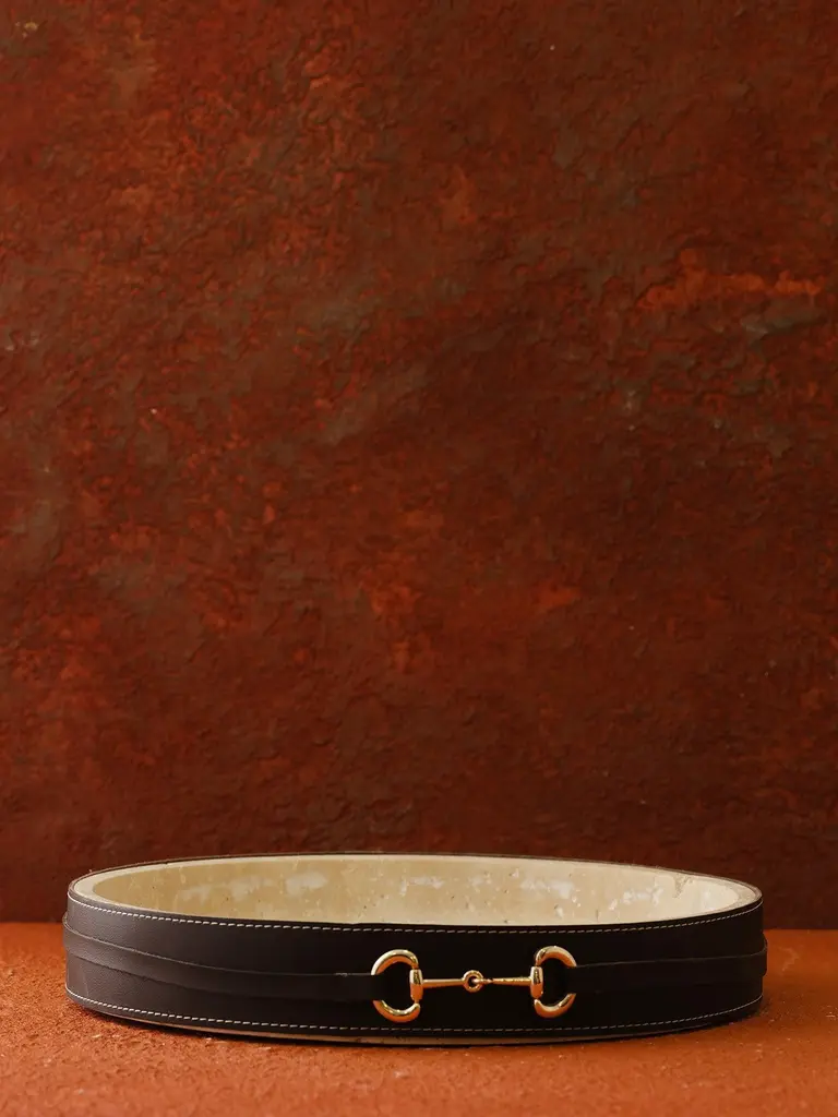 Handmade Travertine Tray Beige Stone & Brown Leather Belt With Gold Horsebit Detail
