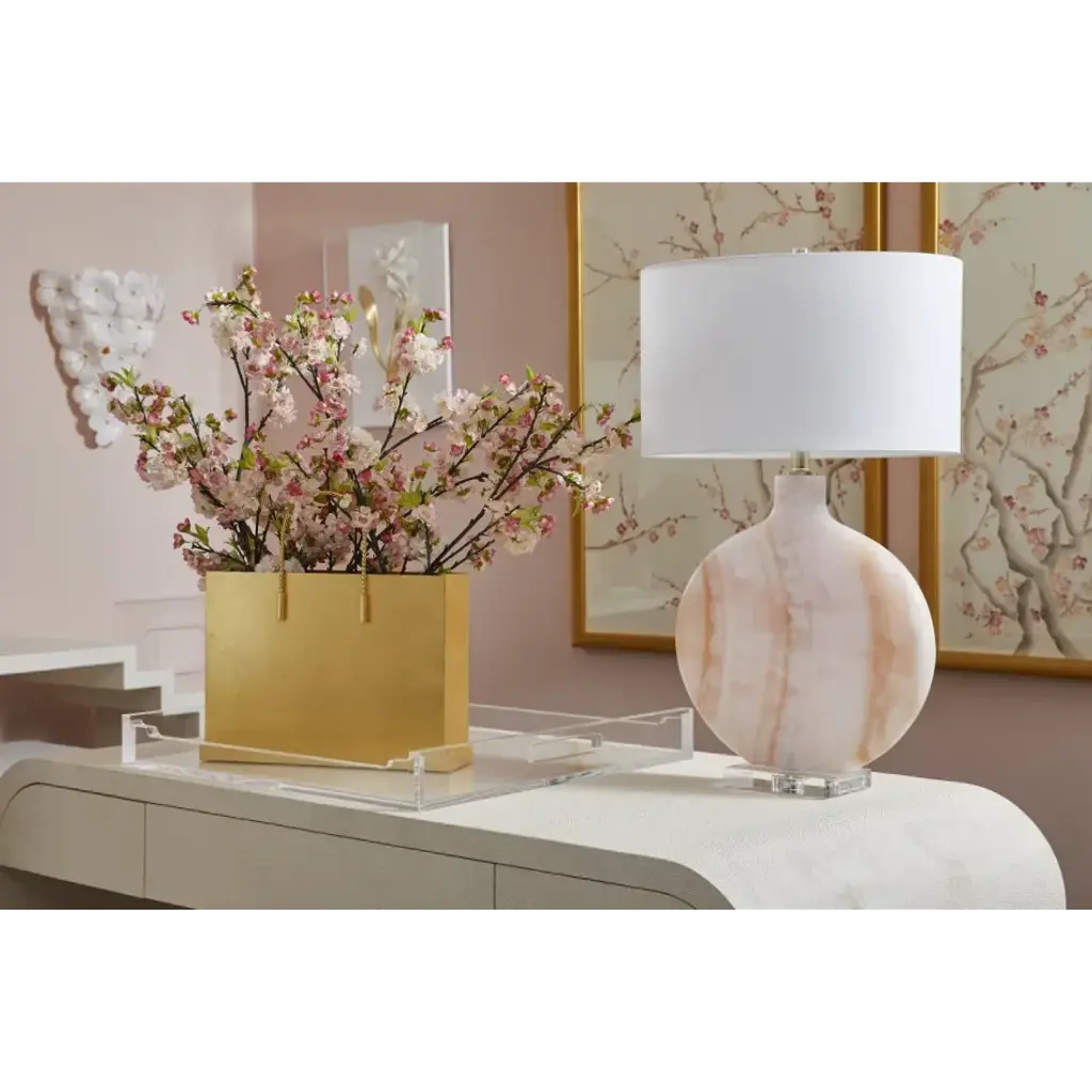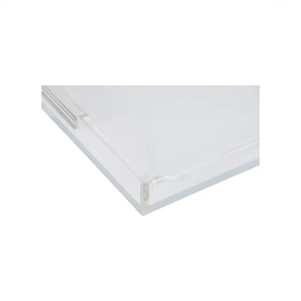 With a Chippendale influenced design, the Hanson Square Tray features simple yet unique Lucite, trim details and rectangle open handles to make a chic and modern butler's tray. Designed by Jamie Merida.