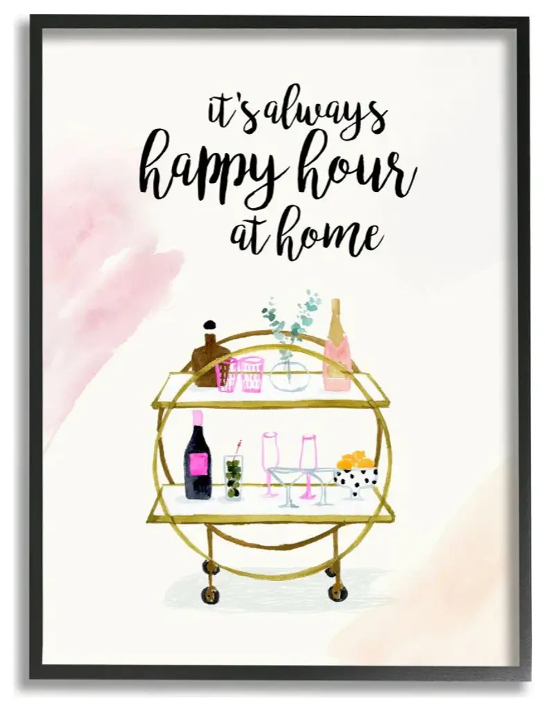 Happy Hour Text Tray Drinks Watercolor Glam Phrase,1pc, Each 11 X 14