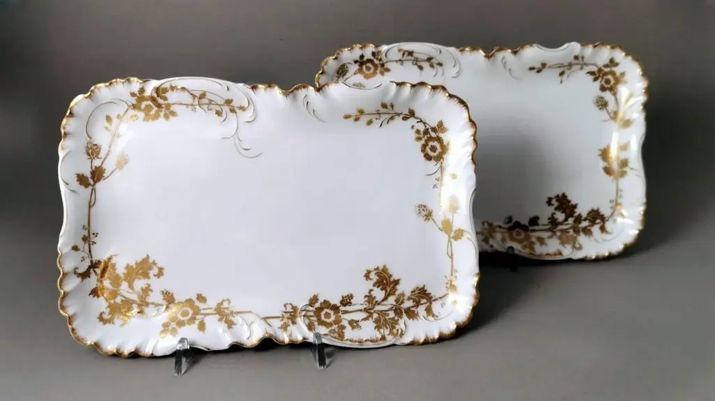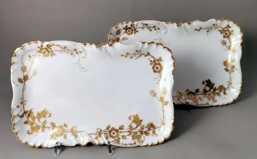 Haviland & Co Limoges Pair Of French Trays White Porcelain And Gold Decoration