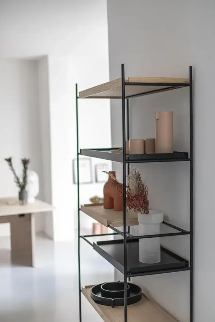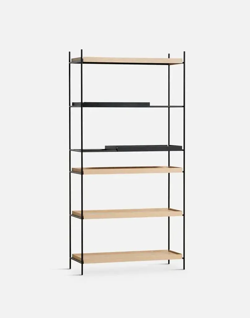 High oak and black tray shelf vii by hanne willmann materials: metal, oak. Dimensions: d 40 x w 100 x h 201 cm also available in different tray conbinations and 2 sizes: h81, h 201 cm. Hanne willmann is a dynamic german designer with her own multidisciplinar y design studio based in berlin. She has an impressive portfolio of furniture and lighting designs, projects, jury memberships and workshops at the university of the arts, berlin. Her designs reveal a profound fascination for details and emphasise the high-value aesthetic appeal. With an open mind and a strong dedication to the craft, hanne willmann is determined to fully reveal the essence of every piece she comes across. This meticulousness is visible in her understanding of materials, colour and innovative production techniques. A shared feature for her designs is the consistent timelessness. Tray shelf is designed with this sustainable mindset and with the intention of staying functional and beautiful as time goes past. Its simple expression, elegant materials and solid construction are made for use for many years to come.