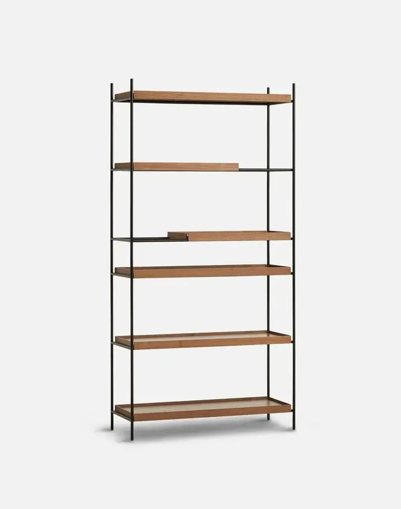 High walnut tray shelf by hanne willmann materials: metal, walnut. Dimensions: d 40 x w 100 x h 201 cm may be available separately in different tray conbinations and 2 sizes: h81, h 201 cm. Hanne willmann is a dynamic german designer with her own multidisciplinar y design studio based in berlin. She has an impressive portfolio of furniture and lighting designs, projects, jury memberships and workshops at the university of the arts, berlin. Her designs reveal a profound fascination for details and emphasise the high-value aesthetic appeal. With an open mind and a strong dedication to the craft, hanne willmann is determined to fully reveal the essence of every piece she comes across. This meticulousness is visible in her understanding of materials, colour and innovative production techniques. A shared feature for her designs is the consistent timelessness. Tray shelf is designed with this sustainable mindset and with the intention of staying functional and beautiful as time goes past. Its simple expression, elegant materials and solid construction are made for use for many years to come. Woud the founders, mia and torben koed, decided to put their 30 years of experience into a new project. It was time for a change and a new challenge. The challenge was to build an ambitious design brand from the ground up with high-quality materials and great attention to the little details. With a drive to create new originals, the woud collection is founded upon the idea to look ahead instead of looking back and share the love for honest design. Therefore, we are eager to discover and develop new ideas whether it being in form, function or choice of material.