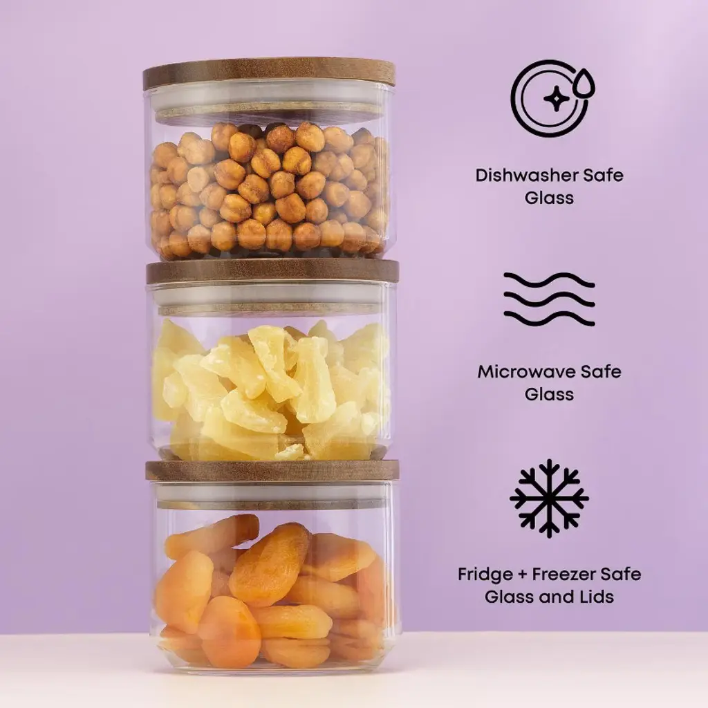 Holden Stackable Glass Storage Canister Set With Wood Lids And Tray