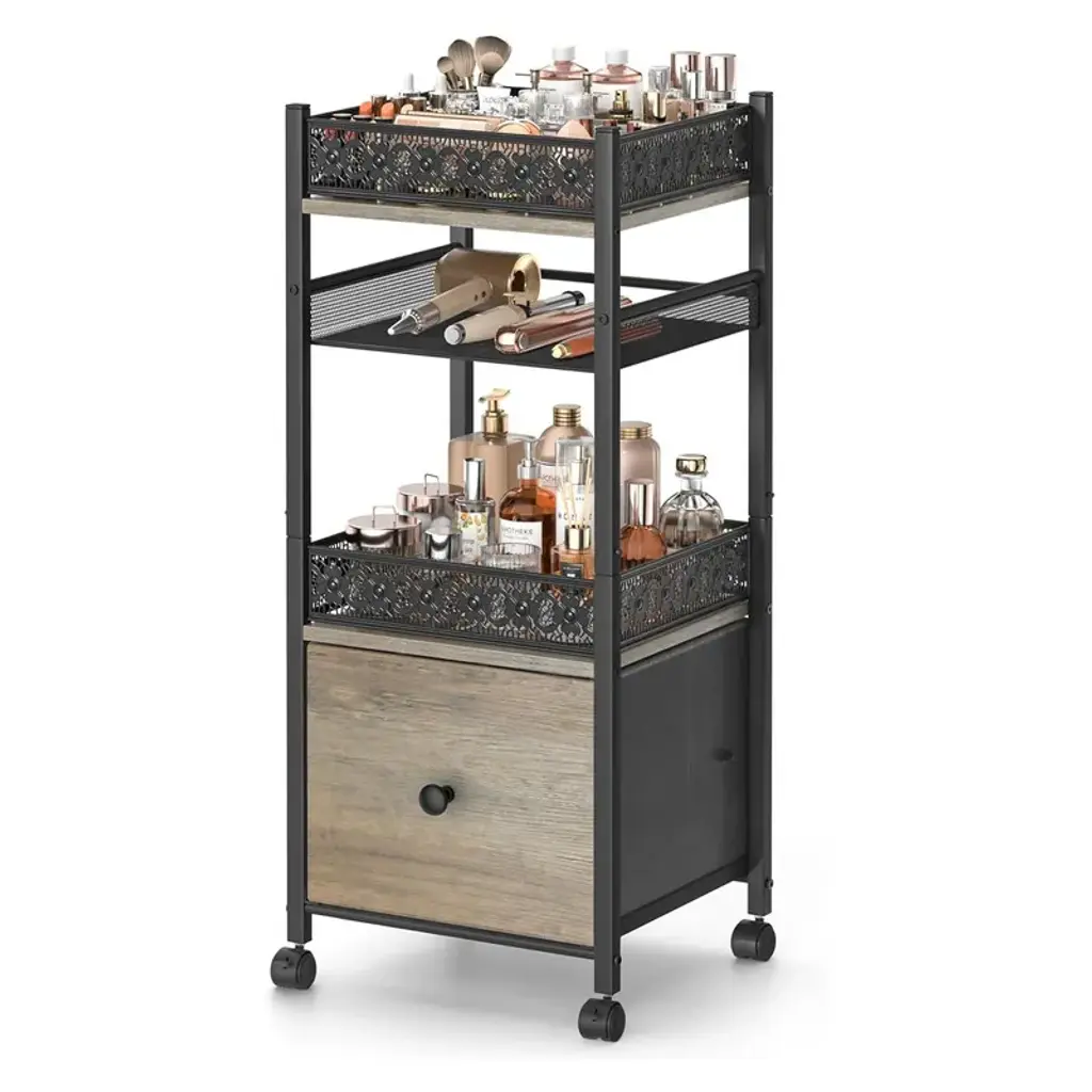 Home Details 2 Tier Slim Flat Wired Rails Vanity Tray - Silver - 10.2"x 3.5"x 8.7" - 10.2"x 3.5"x 8.7" - Silver