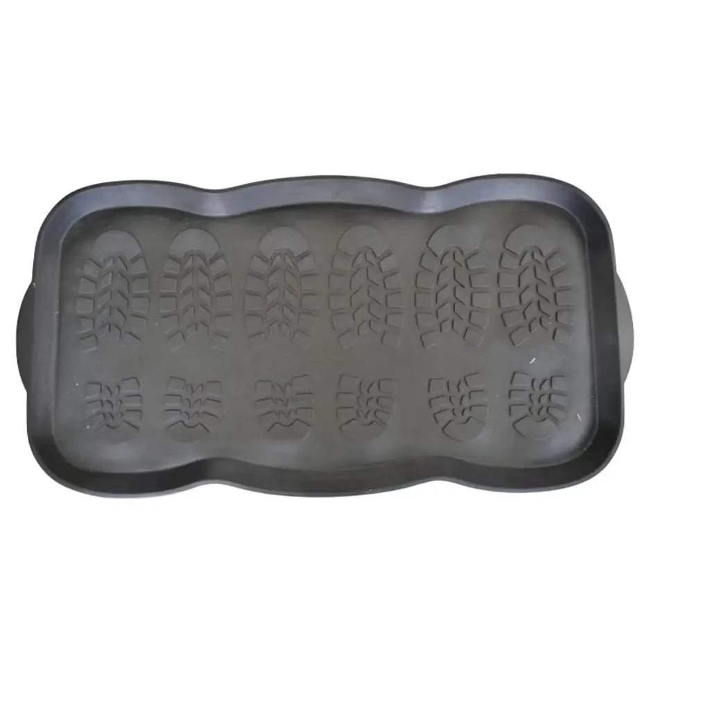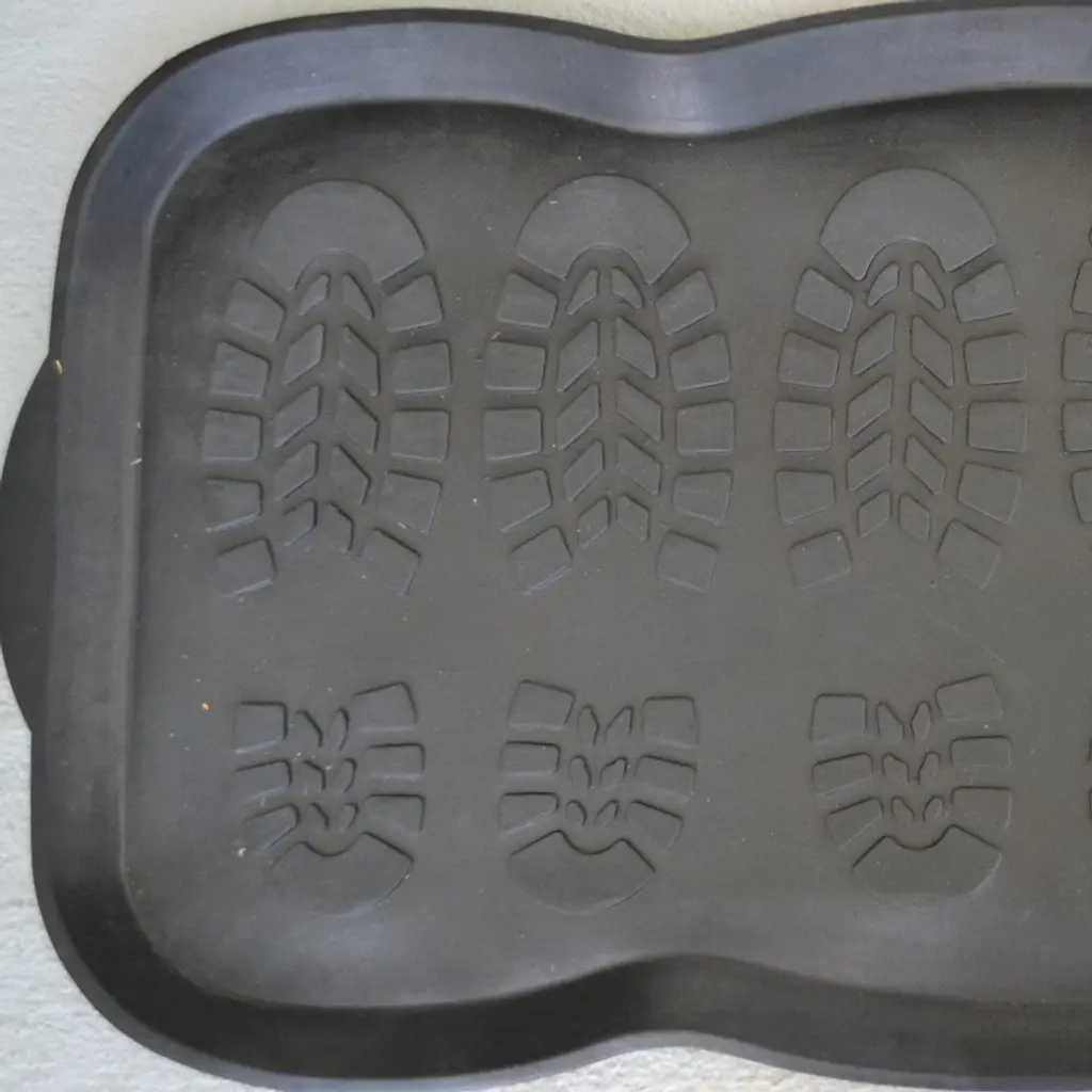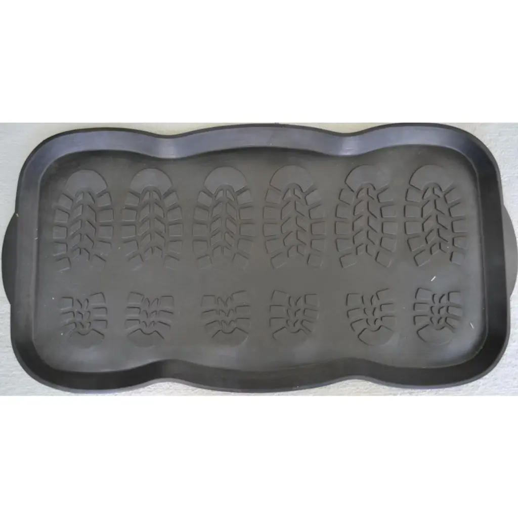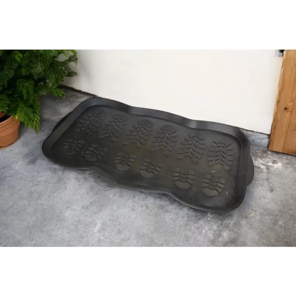 Ready to withstand heavy foot traffic, this 16-inch x 32-inch black rubber outdoor boot tray is an ideal option for the front door or entrance way of your home or business. Crafted from rubber, this mat is not only functional but is a visually appealing accessory to welcome people to your home or business. Add this decorative mat to create a practical yet inviting welcome to all who enter. 15.75-inch H x 31.5-inch W x 0.5-inch D