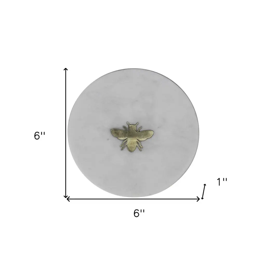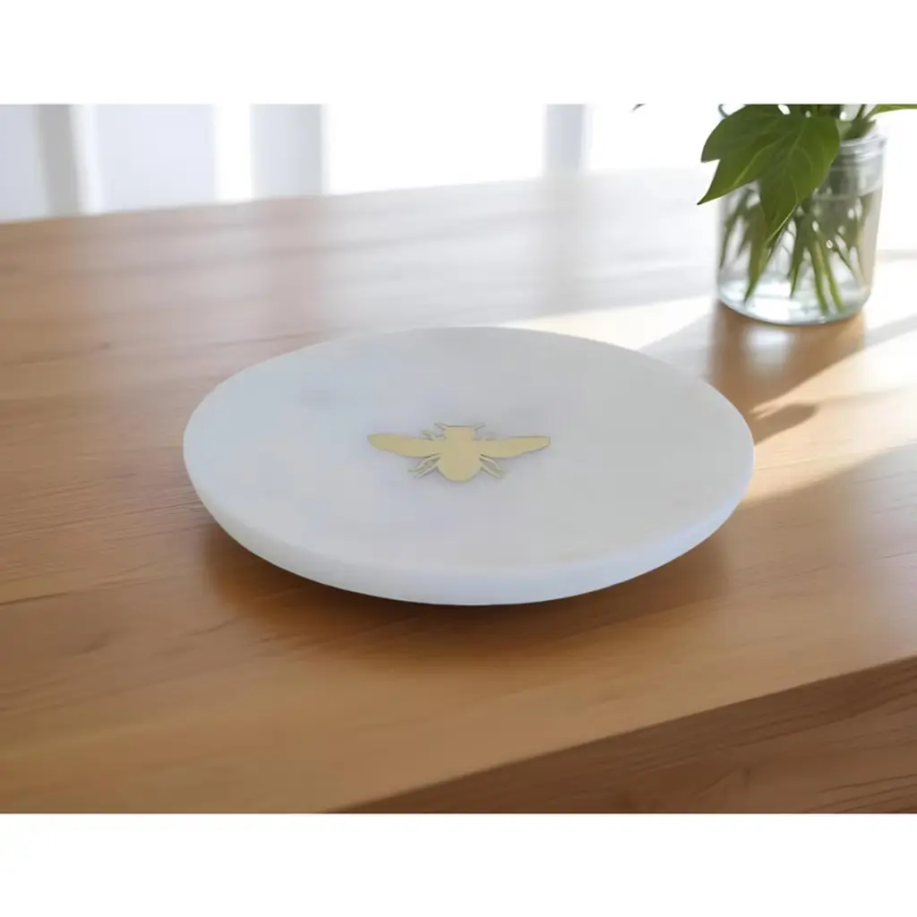 Homeroots 6" White And Gold Bumble Bee Inlaid Marble Serving Tray
