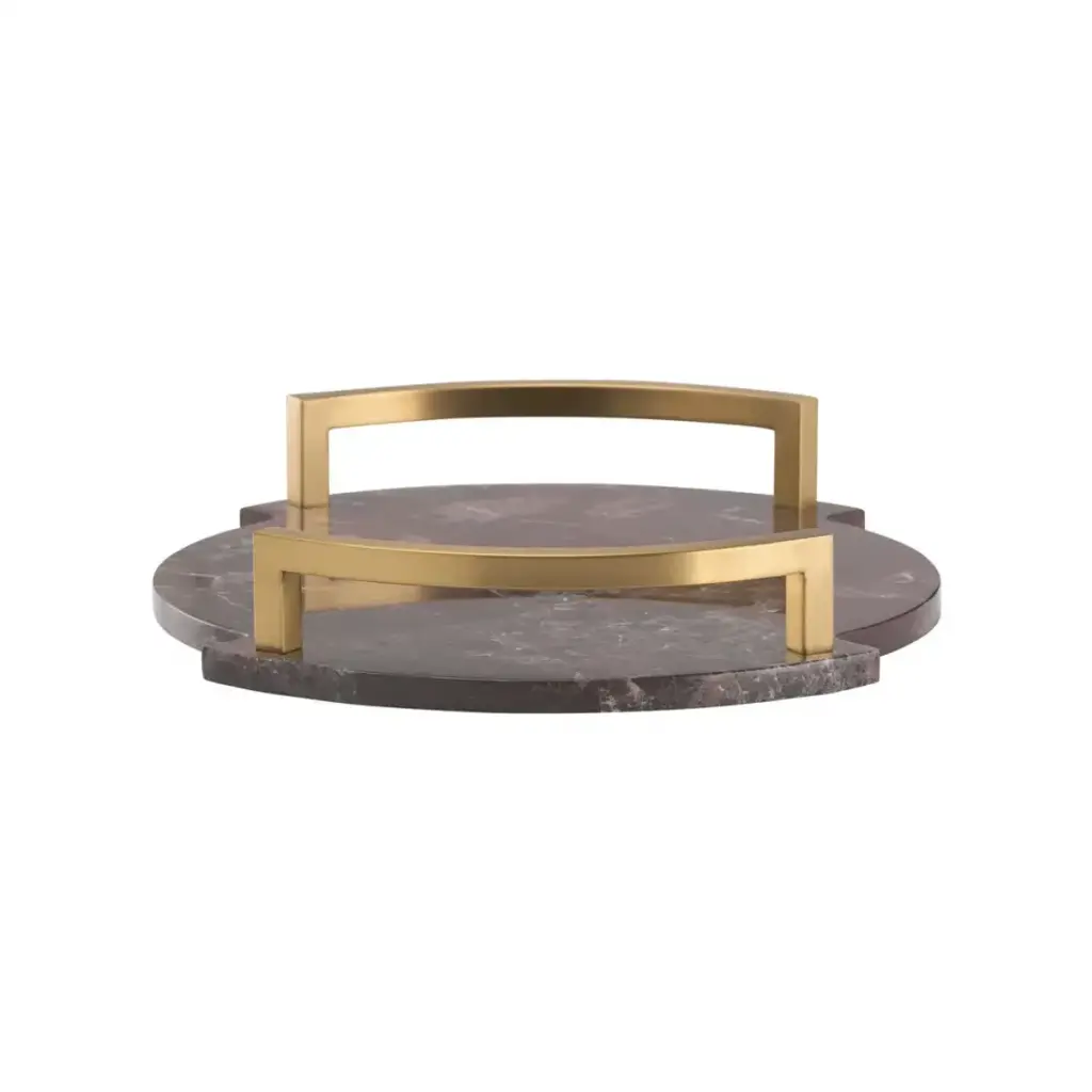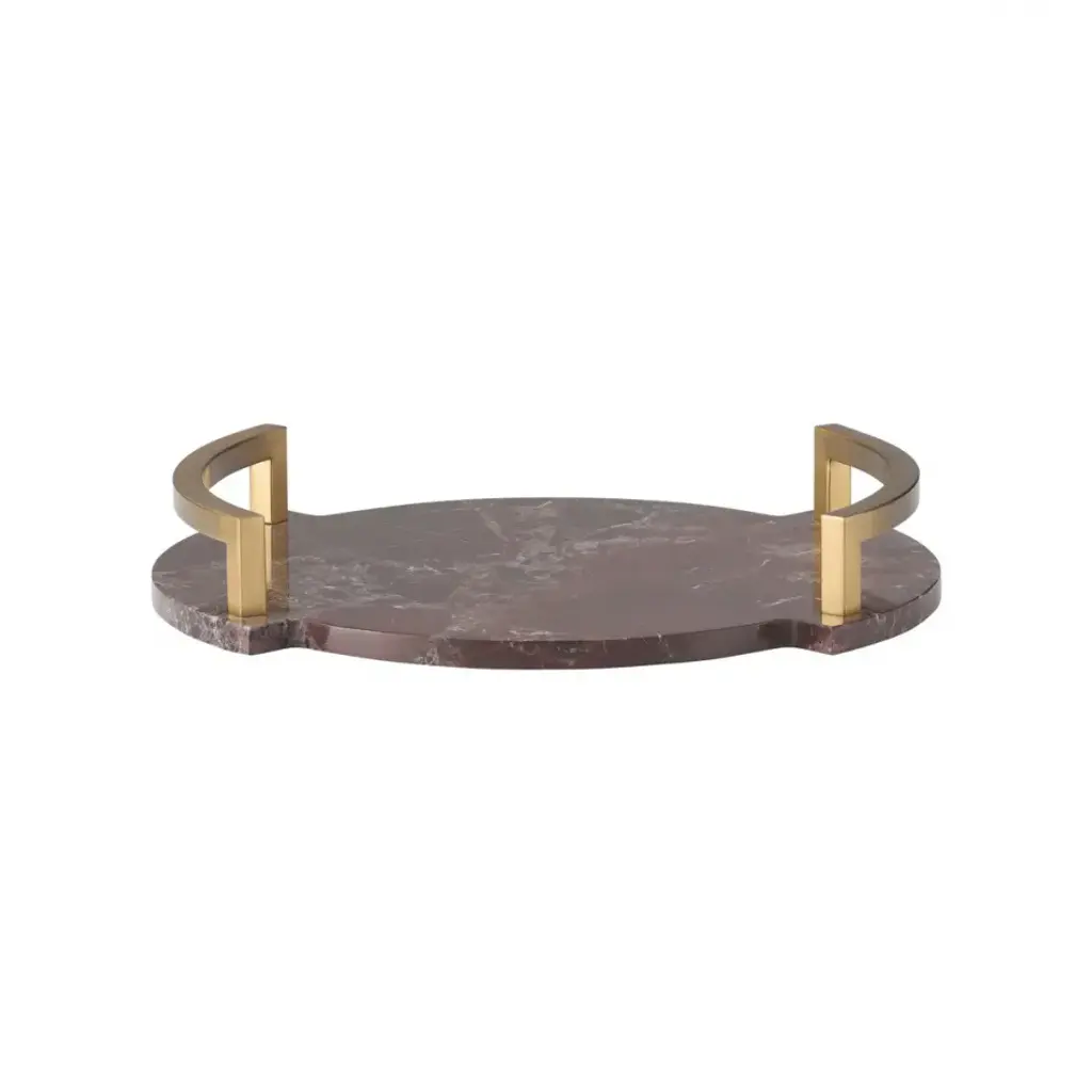 The Hopkins Tray showcases the rich elegance of maroon marble, complemented by sleek brass handles for a touch of modern luxury. Perfect for serving or display, this sophisticated piece adds timeless charm to any setting.