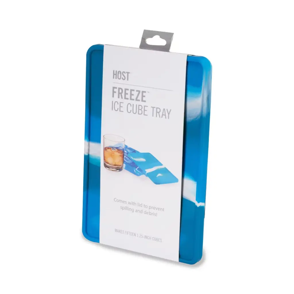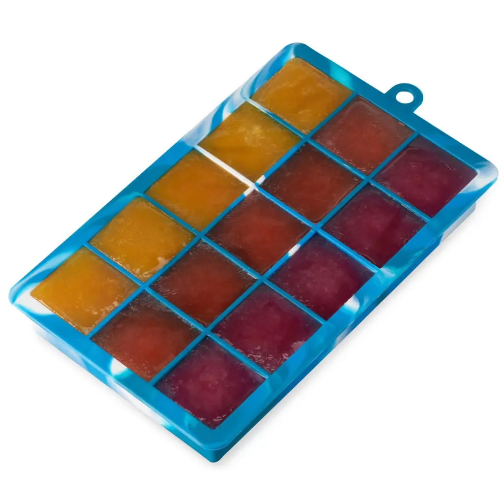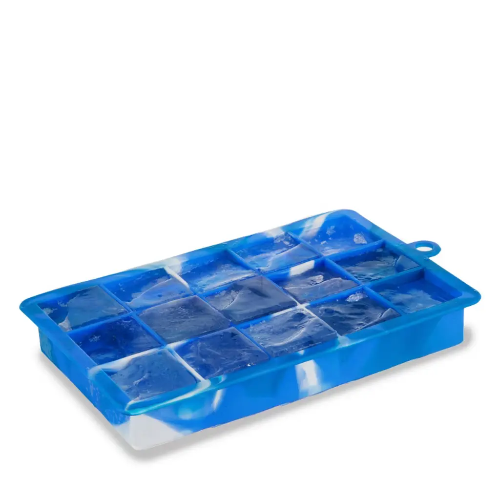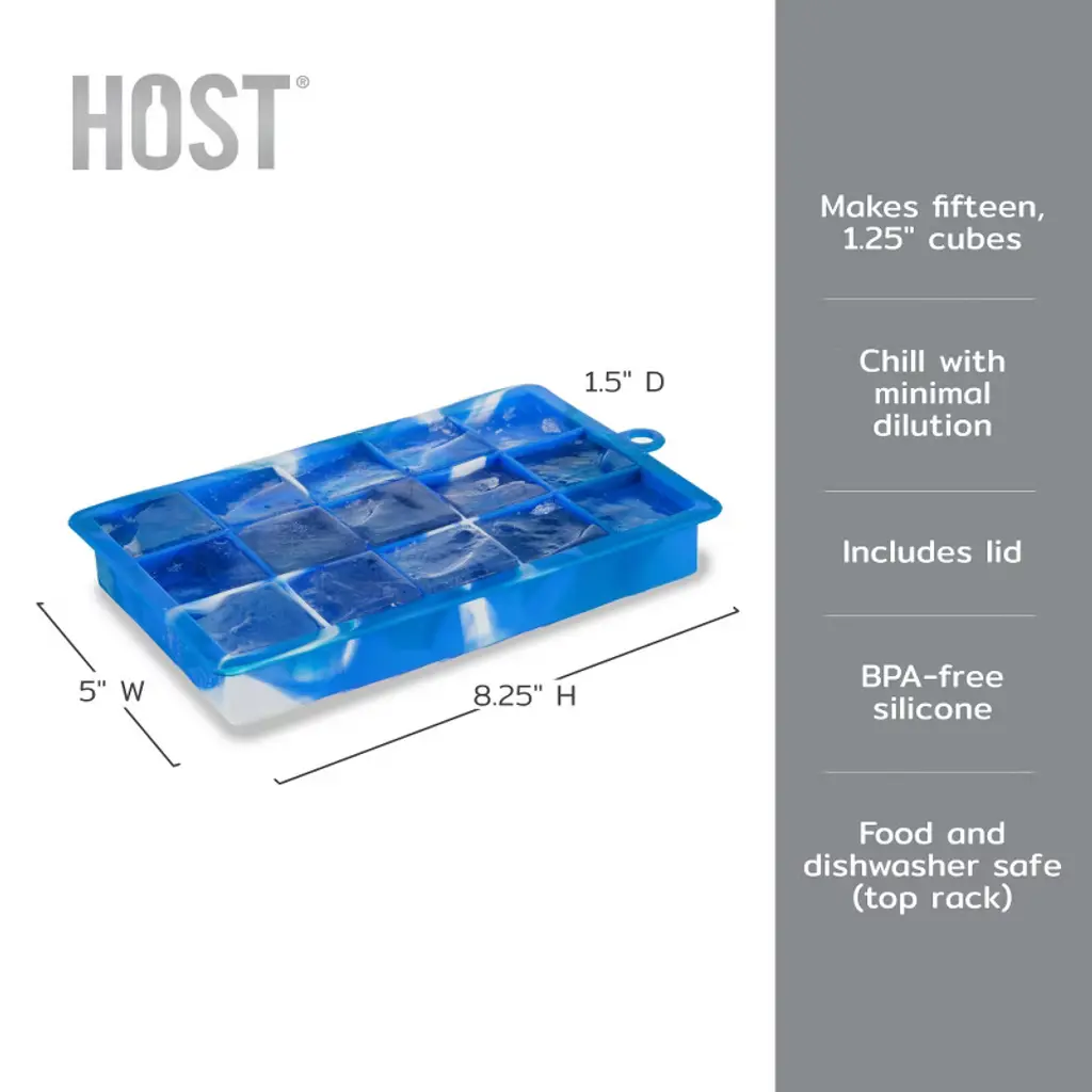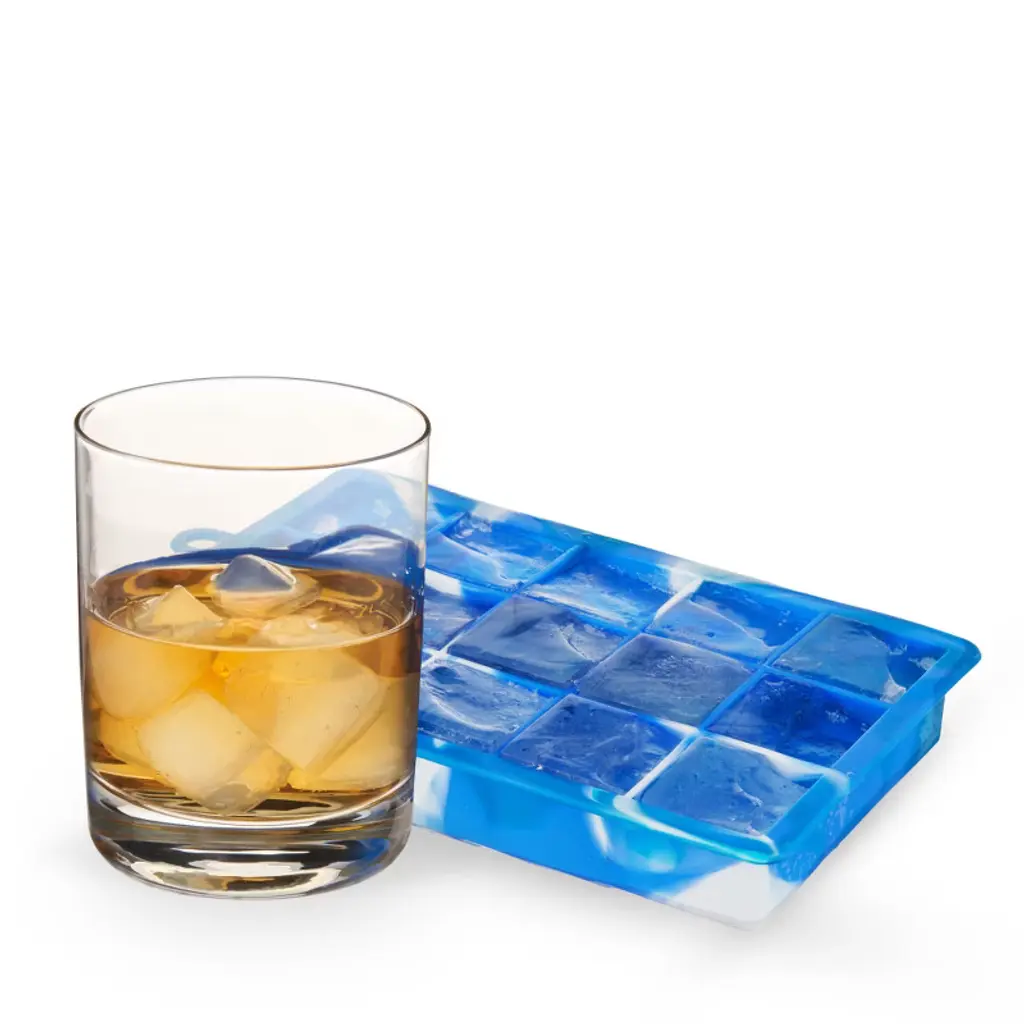 Host Ice Cube Tray With Lid, Makes 15 1.25" Cubes, Durable Silicone Trays, Perfect For Cocktails, Beverages, Iced Coffee, Set Of 1, Blue Marble