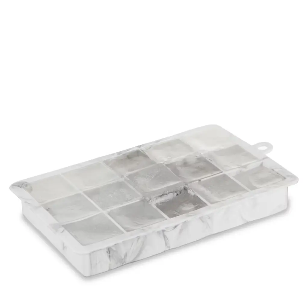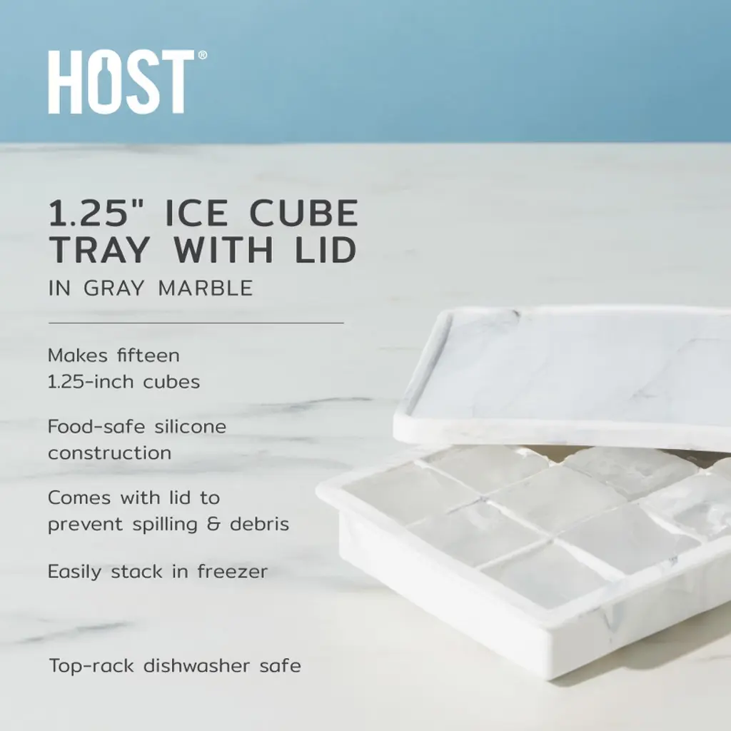 Host Ice Cube Tray With Lid, Makes 15 1.25" Cubes, Durable Silicone Trays, Perfect For Cocktails, Beverages, Iced Coffee, Set Of 1, Marble