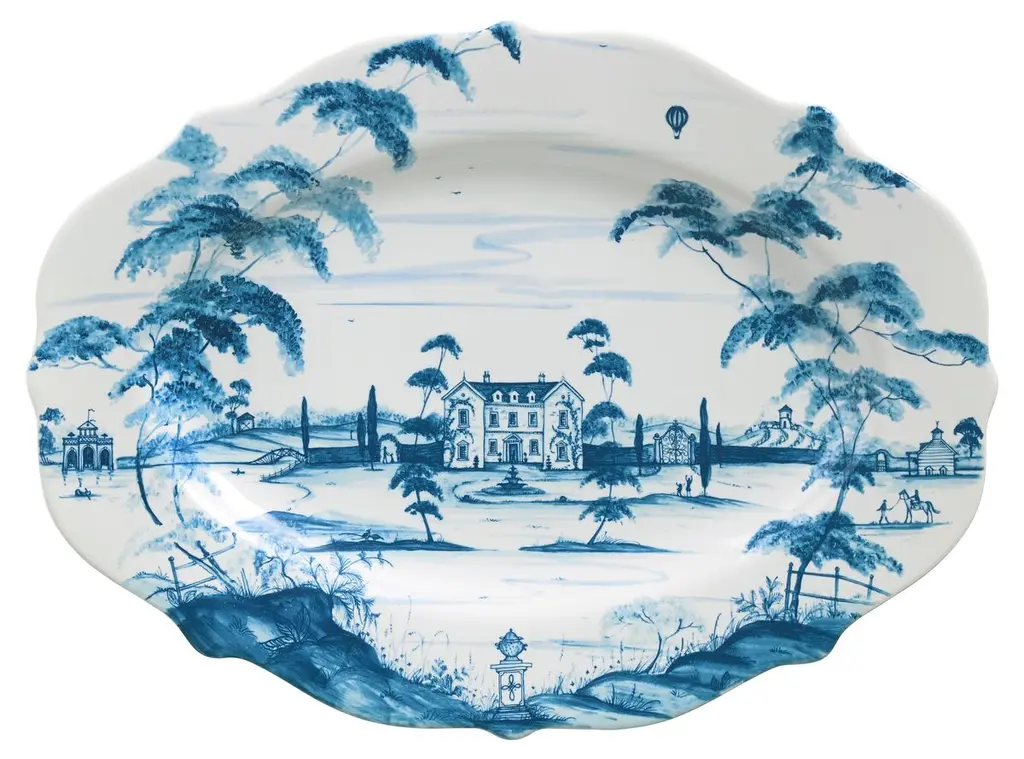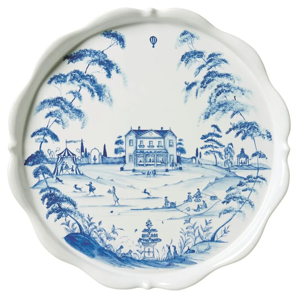 Inspired by country-cabin decor, this ceramic tray with a blue landscape design is as practical as it is pretty: Moving from oven or microwave to table and dishwasher with ease.