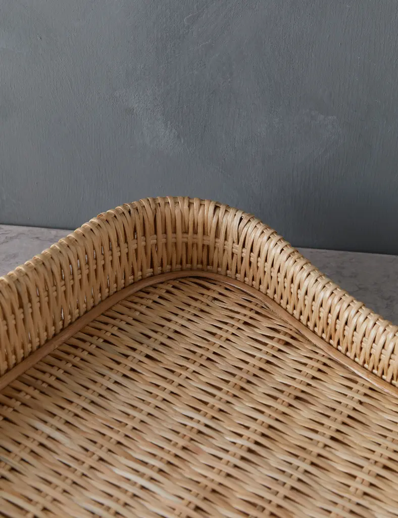 Our Howell tray brings a sculptural edge to rattan in a functional accent for livable home design. From countertops to tablescapeswicker adds warmth and texture. Whether anchoring a vignette or looking for something stylish yet practical to carry drinks or corral essentials, this decorative tray is the perfect addition.
