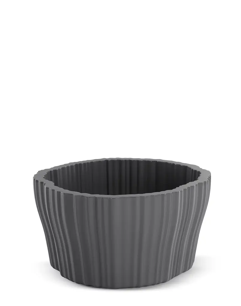 Characteristic of Francesca Verardo's minimal approach to home decor and ability to infuse an expressive quality to objects of common use, this ceramic tray of the I Flessi Collection will be a stunning standalone piece in any home. Crafted with the slip casting technique and painted by hand in a captivating anthracite hue, the matte finish enhances the vertical ridges that alternate in harmonious succession along the border.