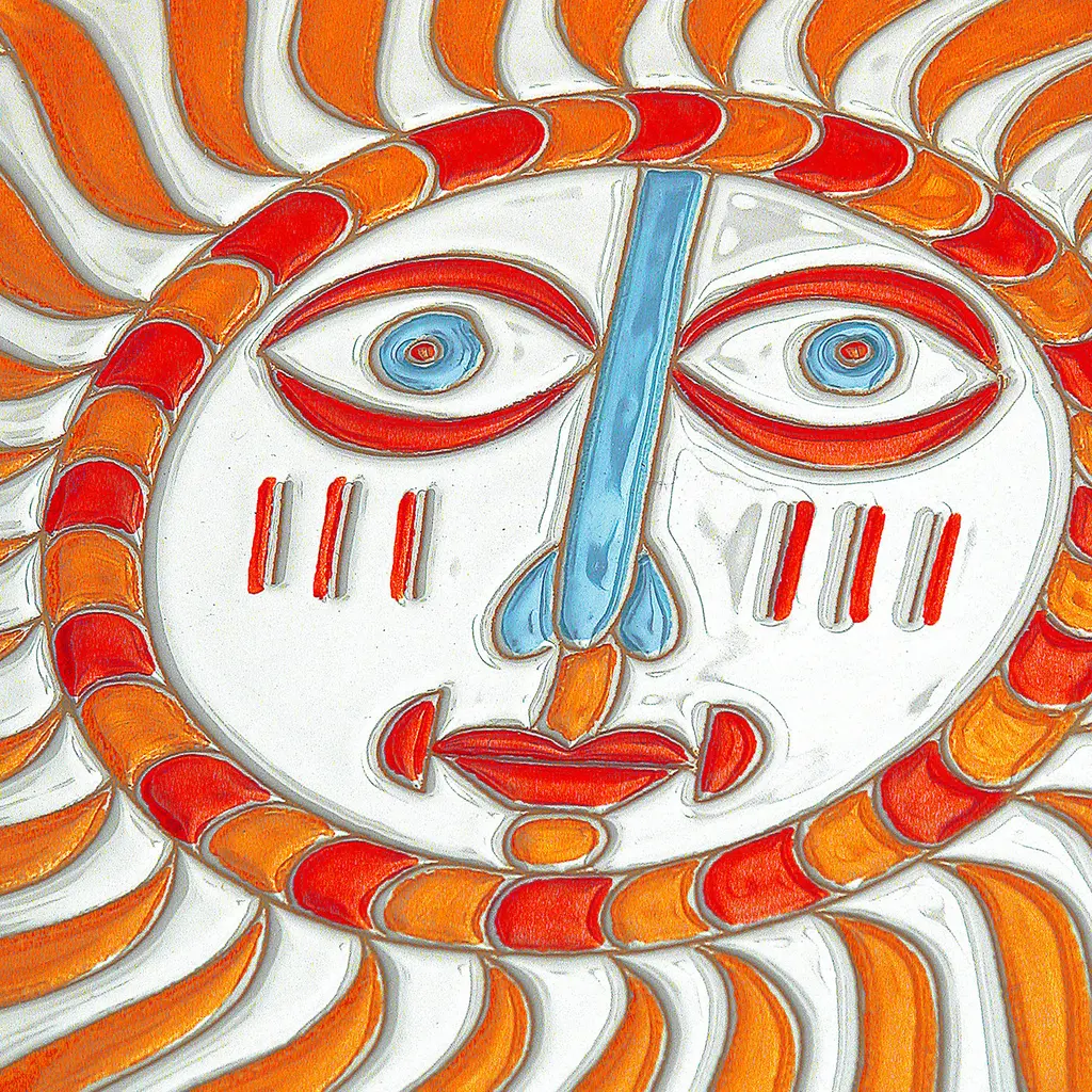 This singular round tray combines the traditions and uniqueness of Sardinia. It glows with the warm colors of summer ("estate" in Italian) and is completely crafted by hand. A hand-applied decoration of a stylized sun adorns the center, obtained with the age-old "graffito" technique, with scratches applied on the terracotta along with vibrantly colored enamels.