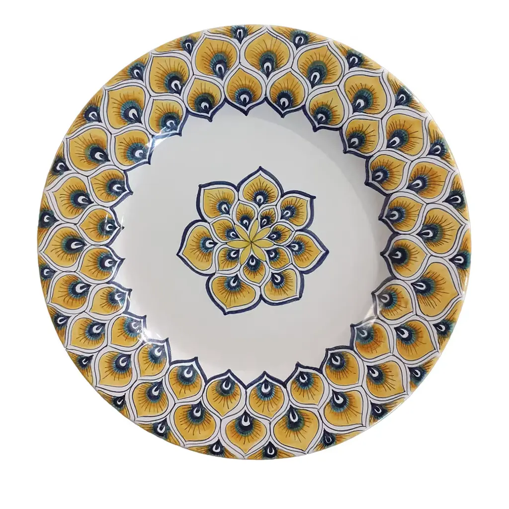 A cheerful, flaming sun catches the eye on this tray inspired by spring ("primavera" in Italian). It is handcrafted by expert artisans and decorated by gently scratching the terracotta to let the enamels blend together in colorful shades, according to the graffito technique. Both the choice of bright colors and the techniques involved in the creation process make this tray a unique piece of art.