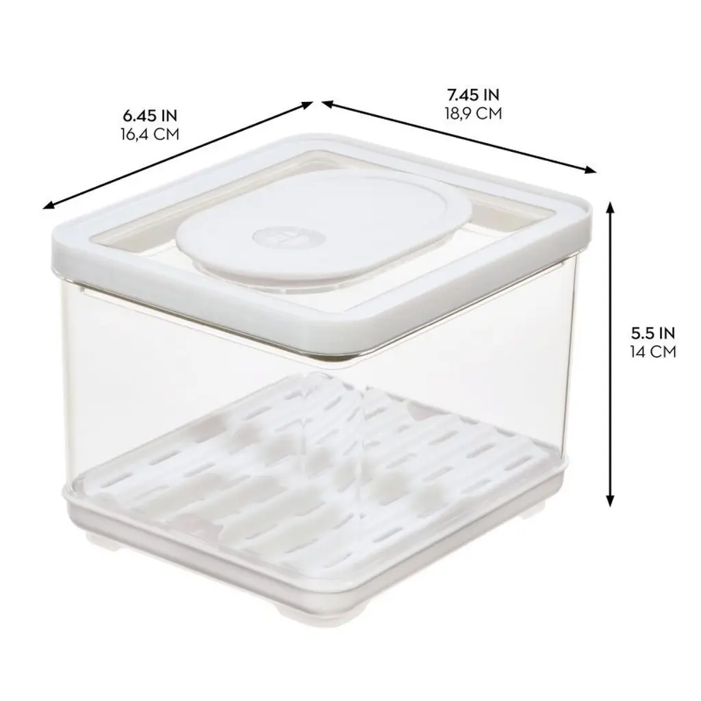 Restore fridge order and avoid losing perishables to the back of the fridge with the iDesign Crisp Produce Bins. Complete with a removable drainage tray, this insert helps keep moisture away and promotes proper air circulation for fruits and vegetables while preventing produce from bruising. Featuring an airtight lid with an integrated vent and removable cover, his produce bin allows you to control the ripening process and keep foods fresher for longer. Its crystal-clear construction makes room for healthy eating habits by keeping everything from fresh produce to healthy snacks easily visible. Its stackable design optimizes every inch of space by allowing you to store foods strategically for a frustration-free fridge space. With iDesign, you can live simply every day.